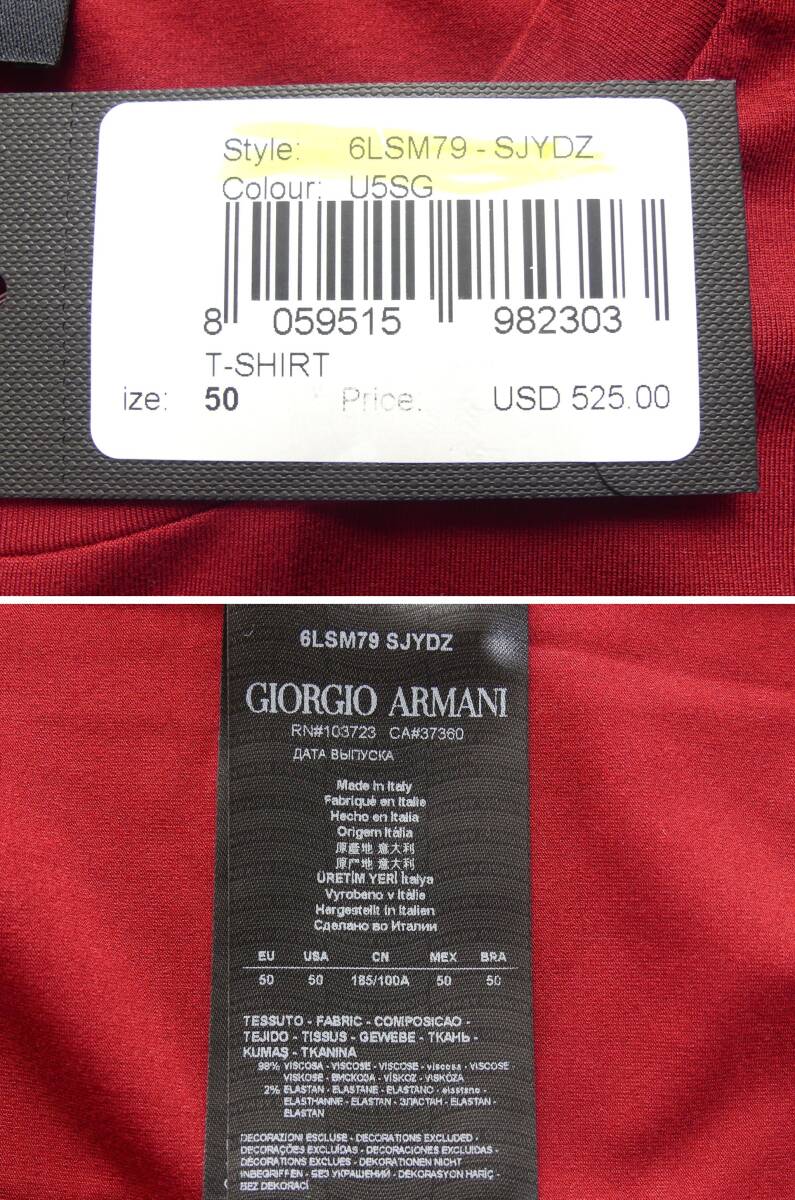 春夏物85,000円新品GIORGIO ARMANIアルマーニ★プルプル質感が一度着たら病みつきになる最高級ビスコースジャージTシャツ【54=日本XXL】