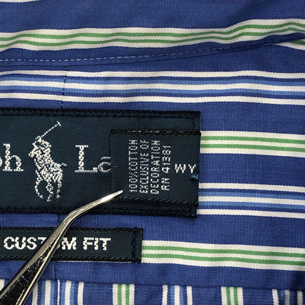 [商品管理番号] U4945 [ブランド] RALPH LAUREN/ラルフローレン [サイズ] XL [実寸サイズ] 肩幅:約52cm 着丈:約80cm 身幅:約64cm 袖丈:約67cm [主な素材] 表地 : コットン [色] ブルー [仕様] ボタンダウン ストライプ [状態] | |||