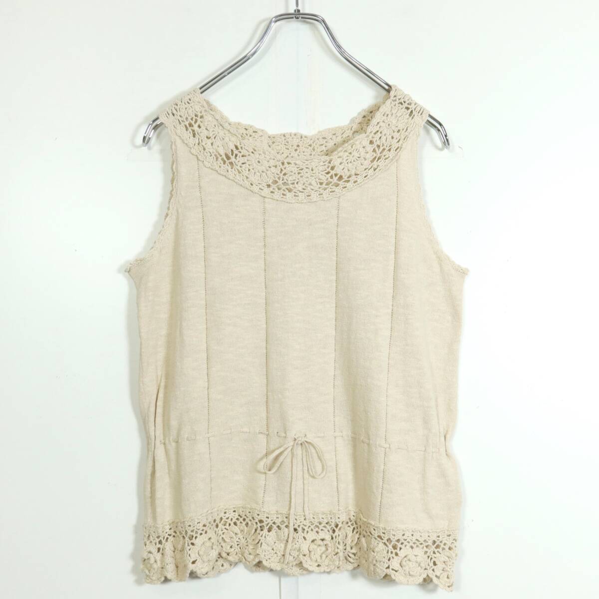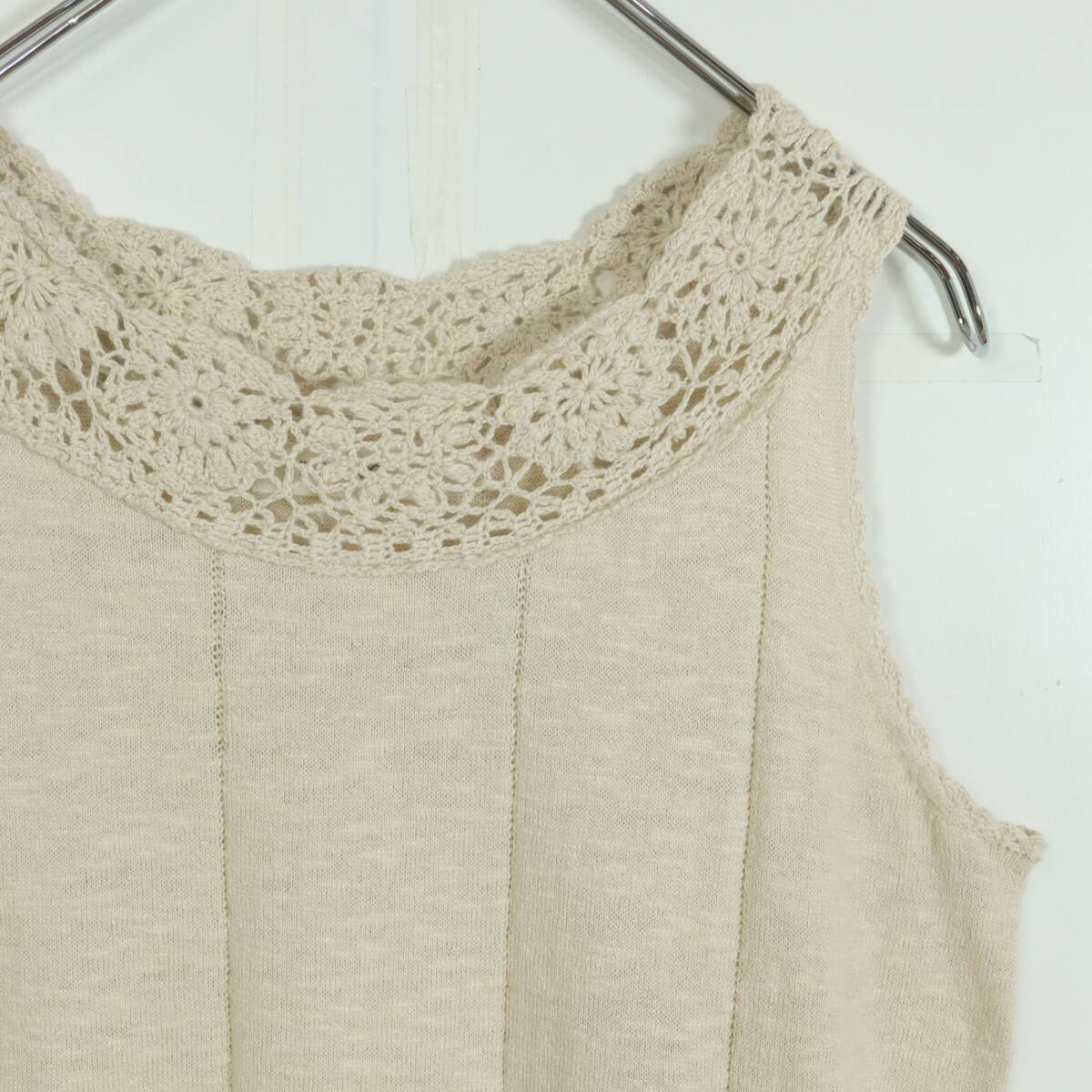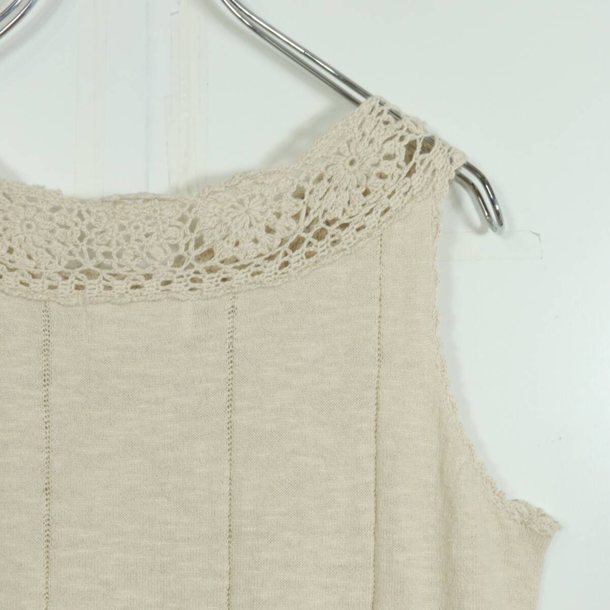 商品説明 | 【実寸約】バスト92着丈48(cm) 【サイズ表記】 11 【素材】 麻55綿45% 【状態】普通の使用感のあるお品物 【デザイン】ベージュ系 透かし編みが素敵なノースリーブニットソーです。 綿麻素材で涼しげ! 薄手 |