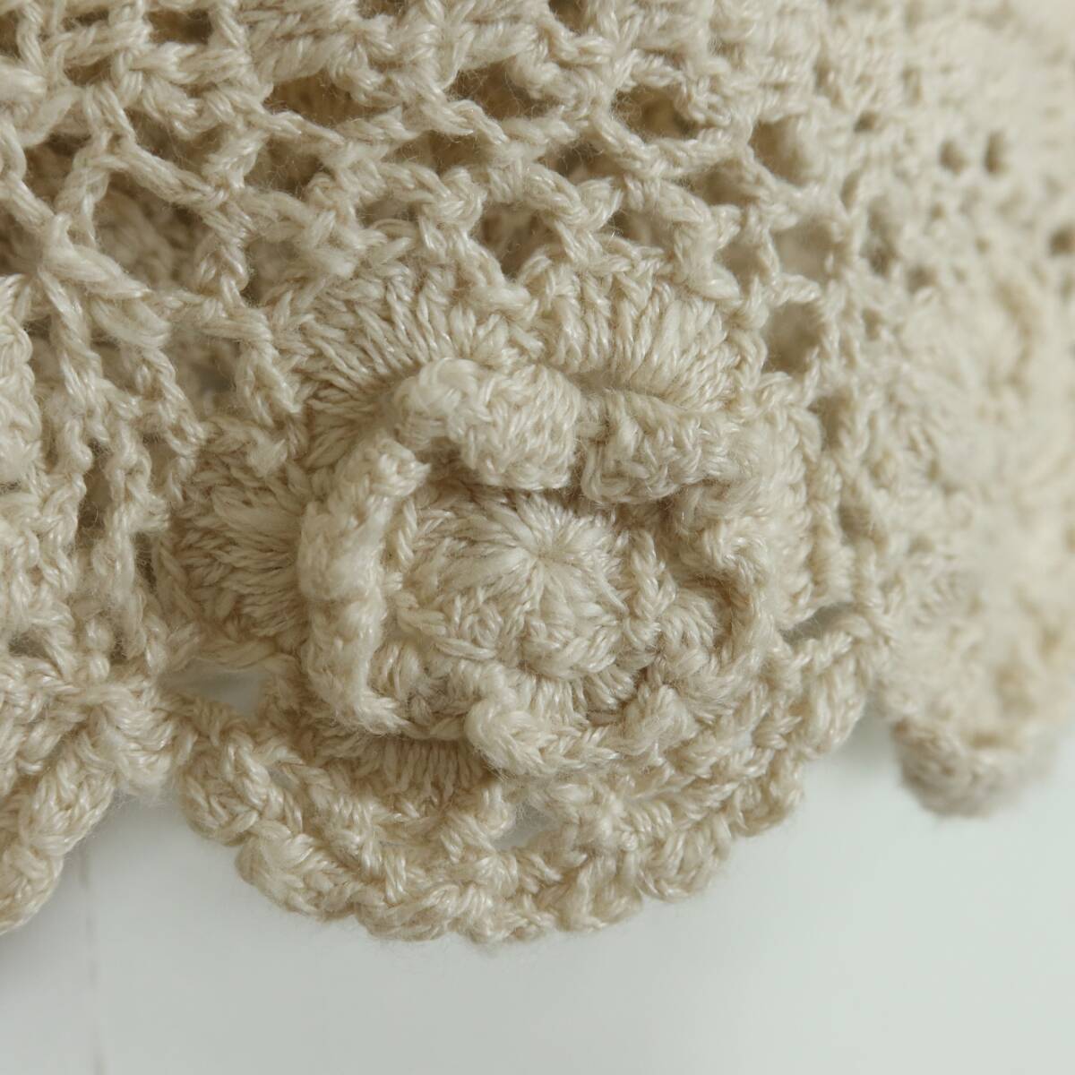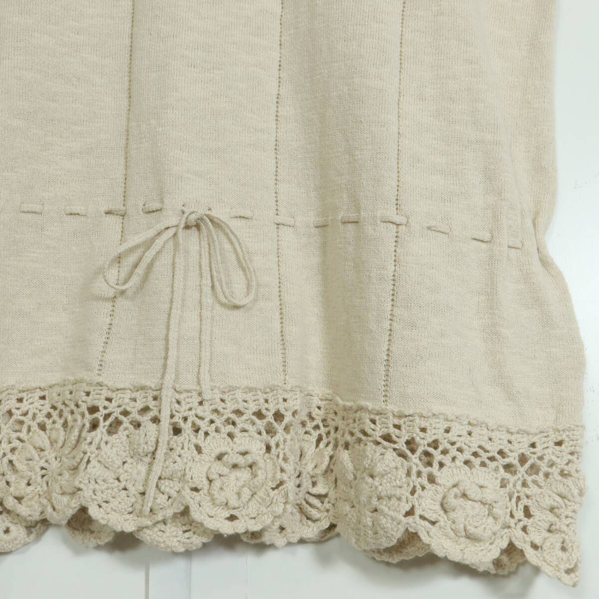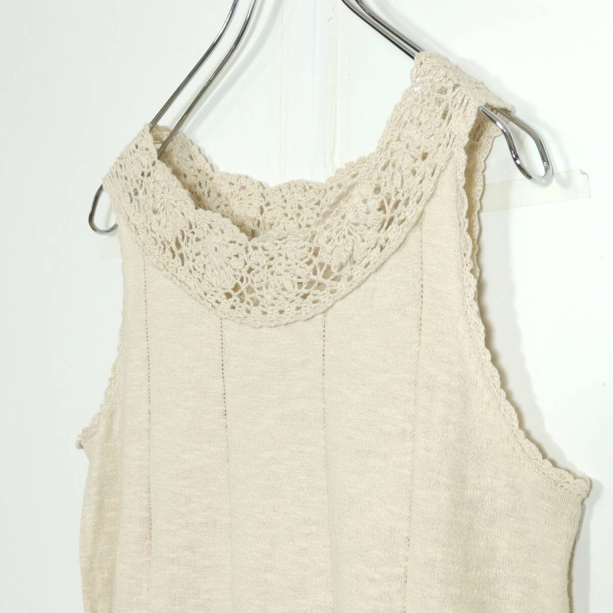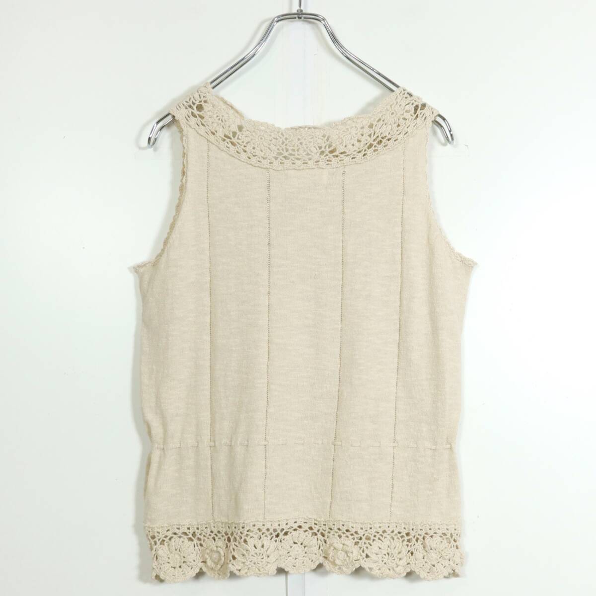 商品説明 | 【実寸約】バスト92着丈48(cm) 【サイズ表記】 11 【素材】 麻55綿45% 【状態】普通の使用感のあるお品物 【デザイン】ベージュ系 透かし編みが素敵なノースリーブニットソーです。 綿麻素材で涼しげ! 薄手 |