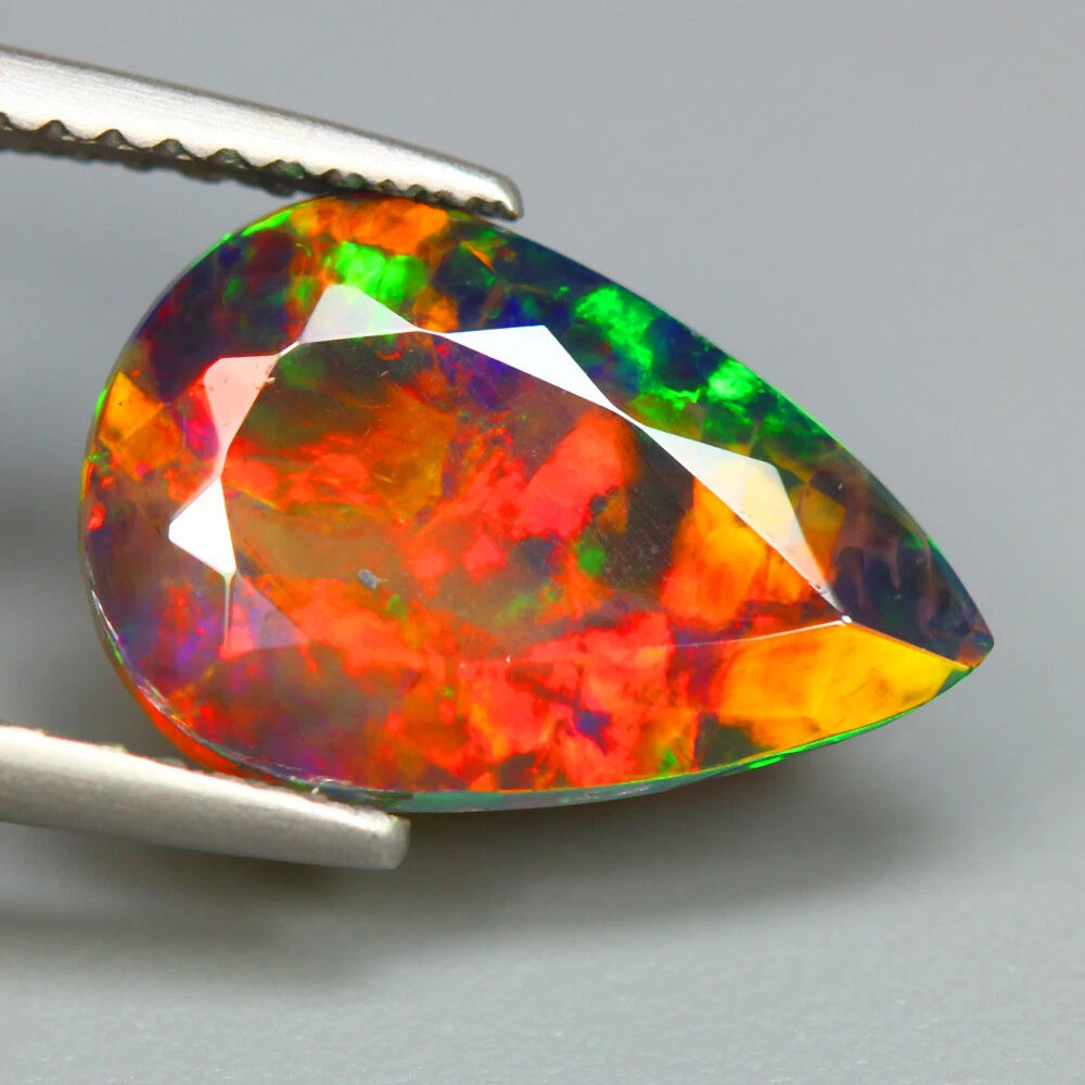 美しく宝石カットされた エチオピア産 フラッシュ ウェロソリッドブラックオパール(天然オパール 加熱処理済み)