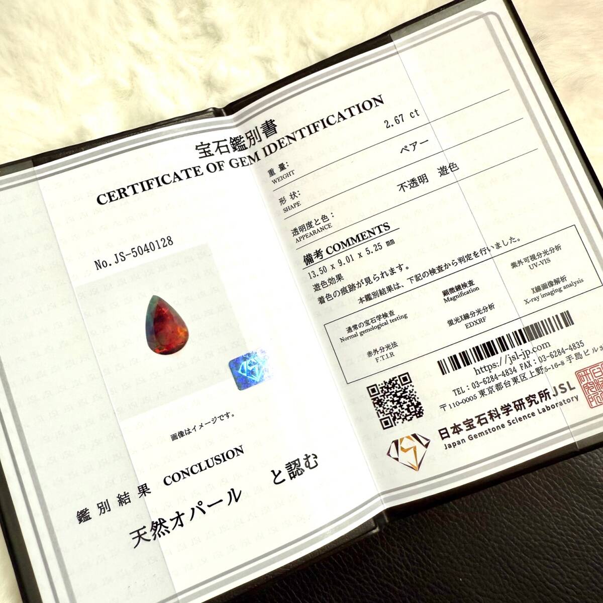 日宝研宝石鑑別書付き