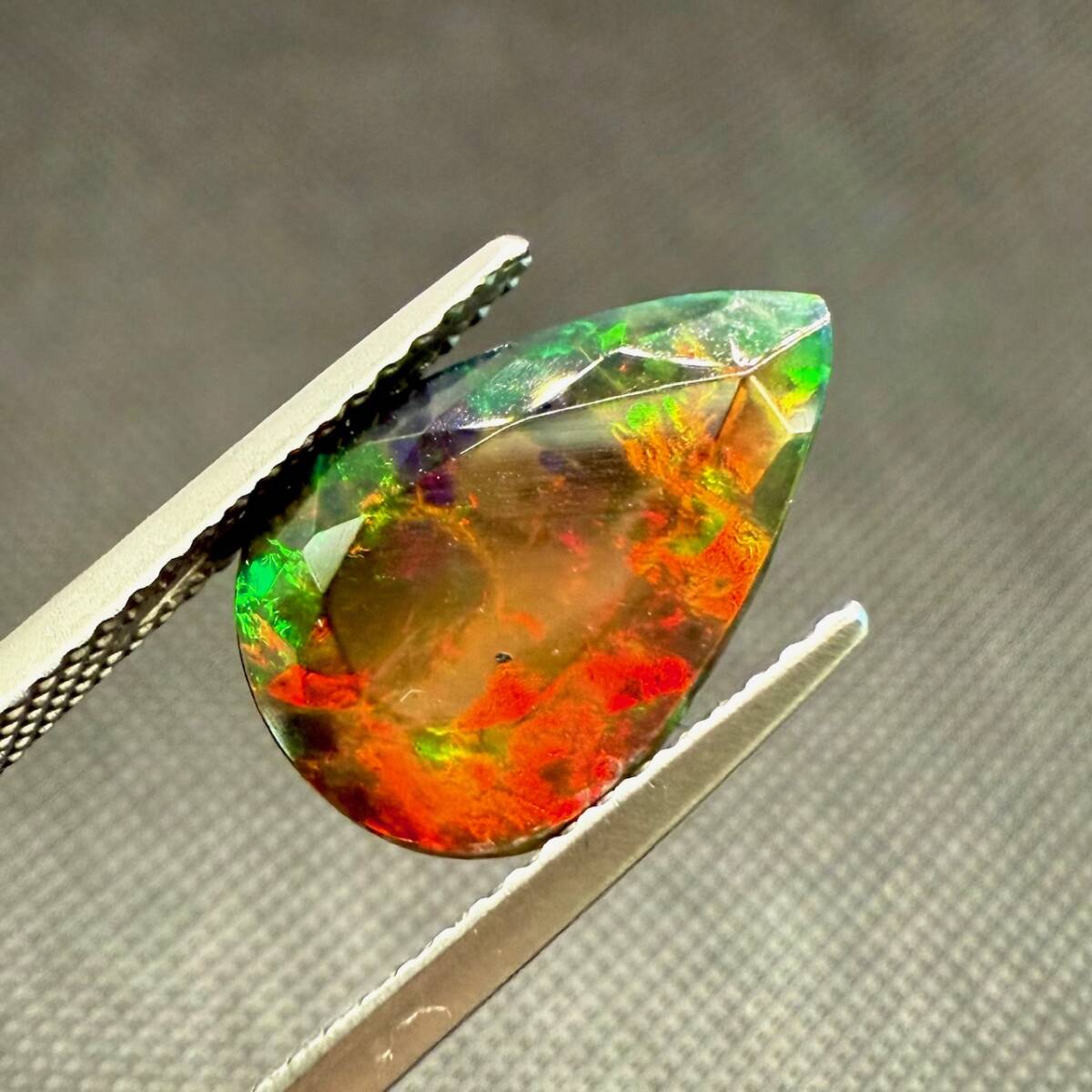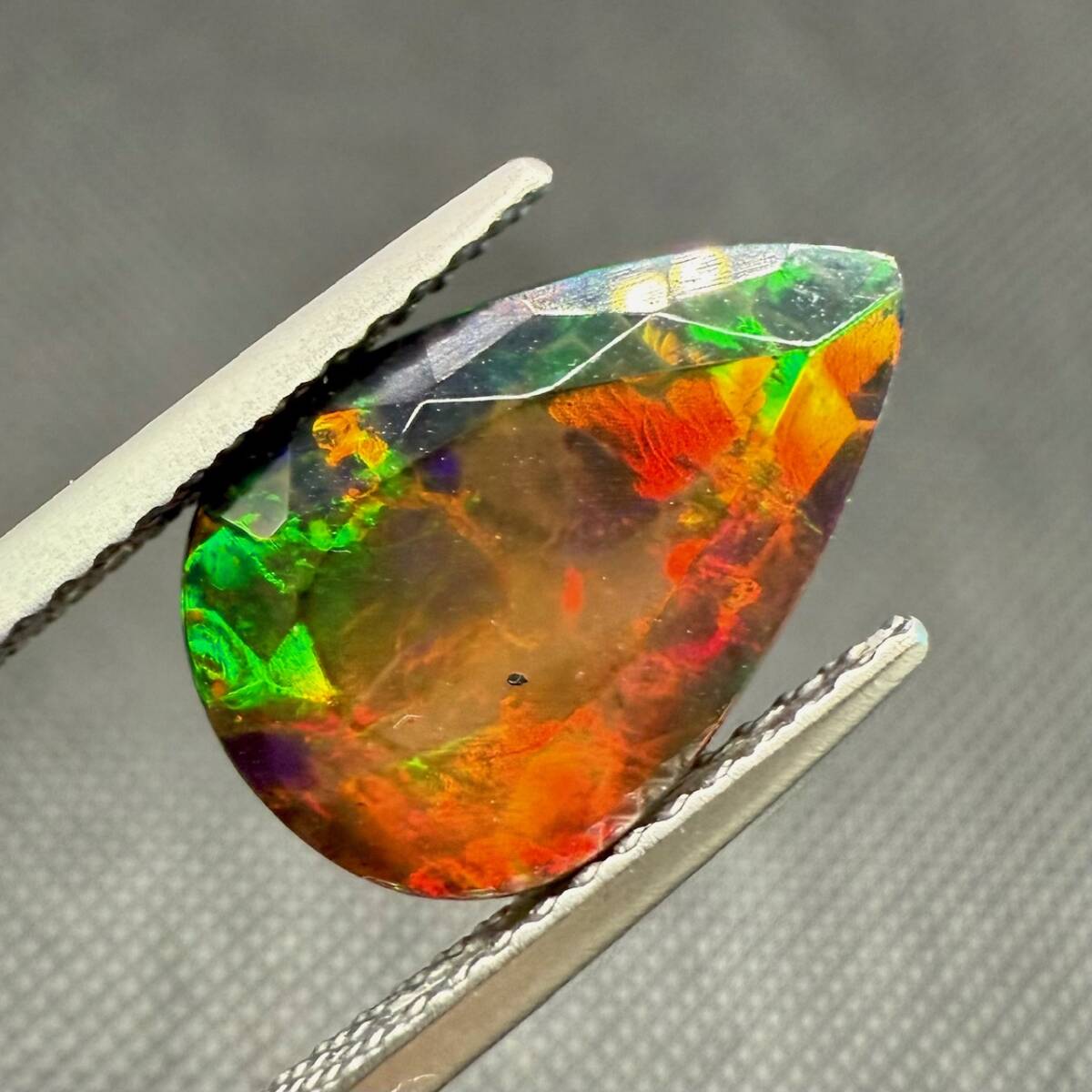 オパールの中でも黒い内部に虹色の鮮やかな光を宿し、綺麗な遊色効果が表れたものを「ウェロソリッドブラックオパール」と呼びます。非常に上質で魅惑的な輝きを放っているルースです。