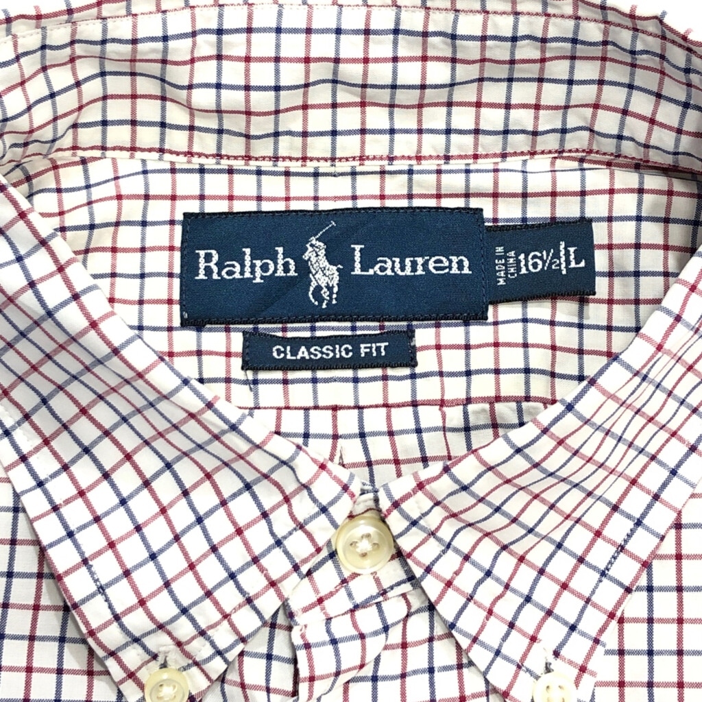 [商品管理番号] U4959 [ブランド] Polo by Ralph Lauren/ポロ ラルフローレン [サイズ] 16 1/2 [実寸サイズ] 肩幅:約48cm 着丈:約77cm 身幅:約64cm 袖丈:約63cm [主な素材] 表地 : コットン [色] マルチカラー [仕様] ボタンダウン チェック [状態] 汚れ:袖先、腹部 特記事項:変色 | |||
