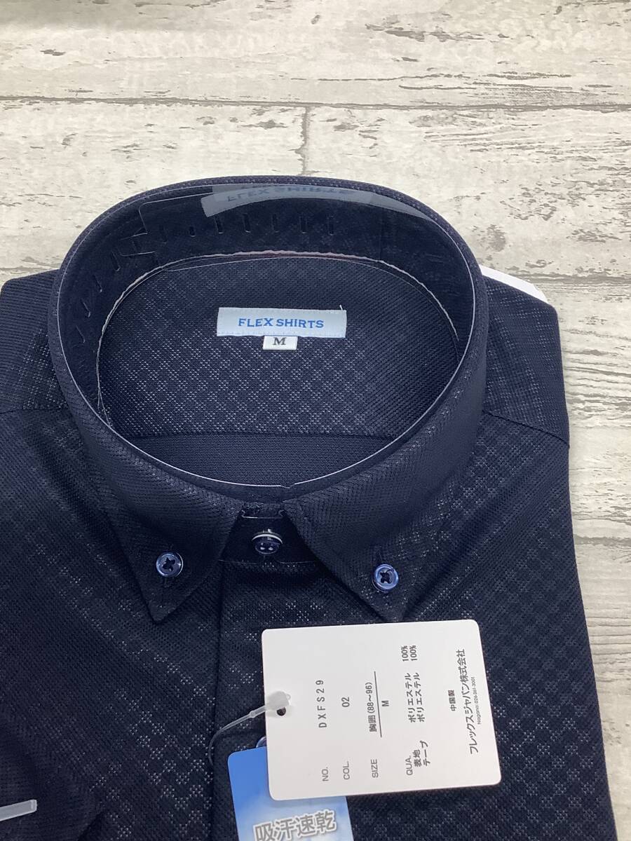 新品未使用★39Mサイズ半袖 ★ボタンダウンのカッターシャツ★紺柄 ポリエステル100% 速乾素材ワイシャツ