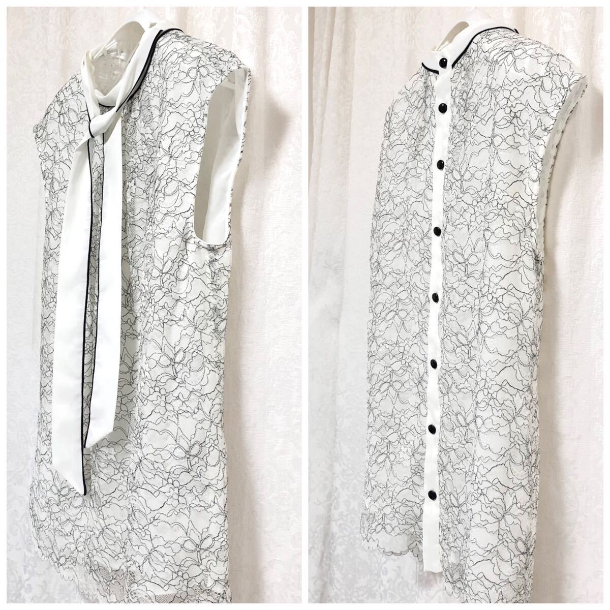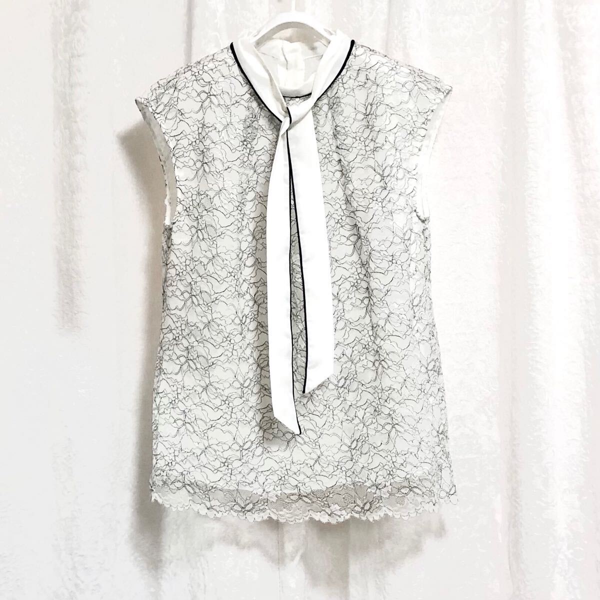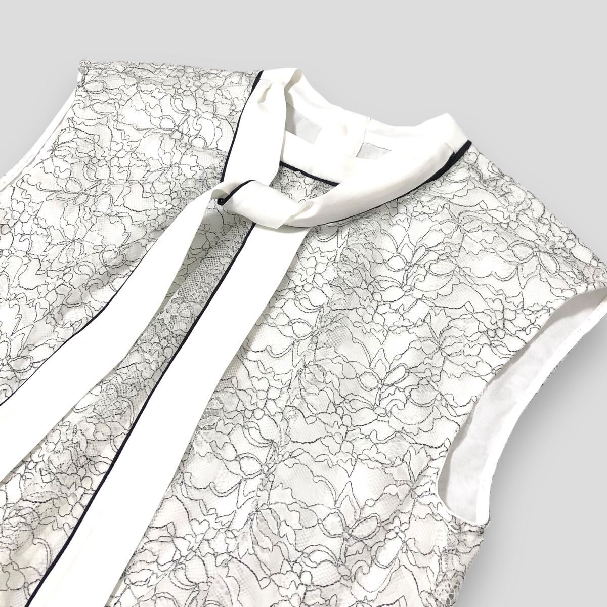 総レースのフェミニンなブラウス。さらにボウタイをプラスする事で、品のある大人スタイルへと導きます。