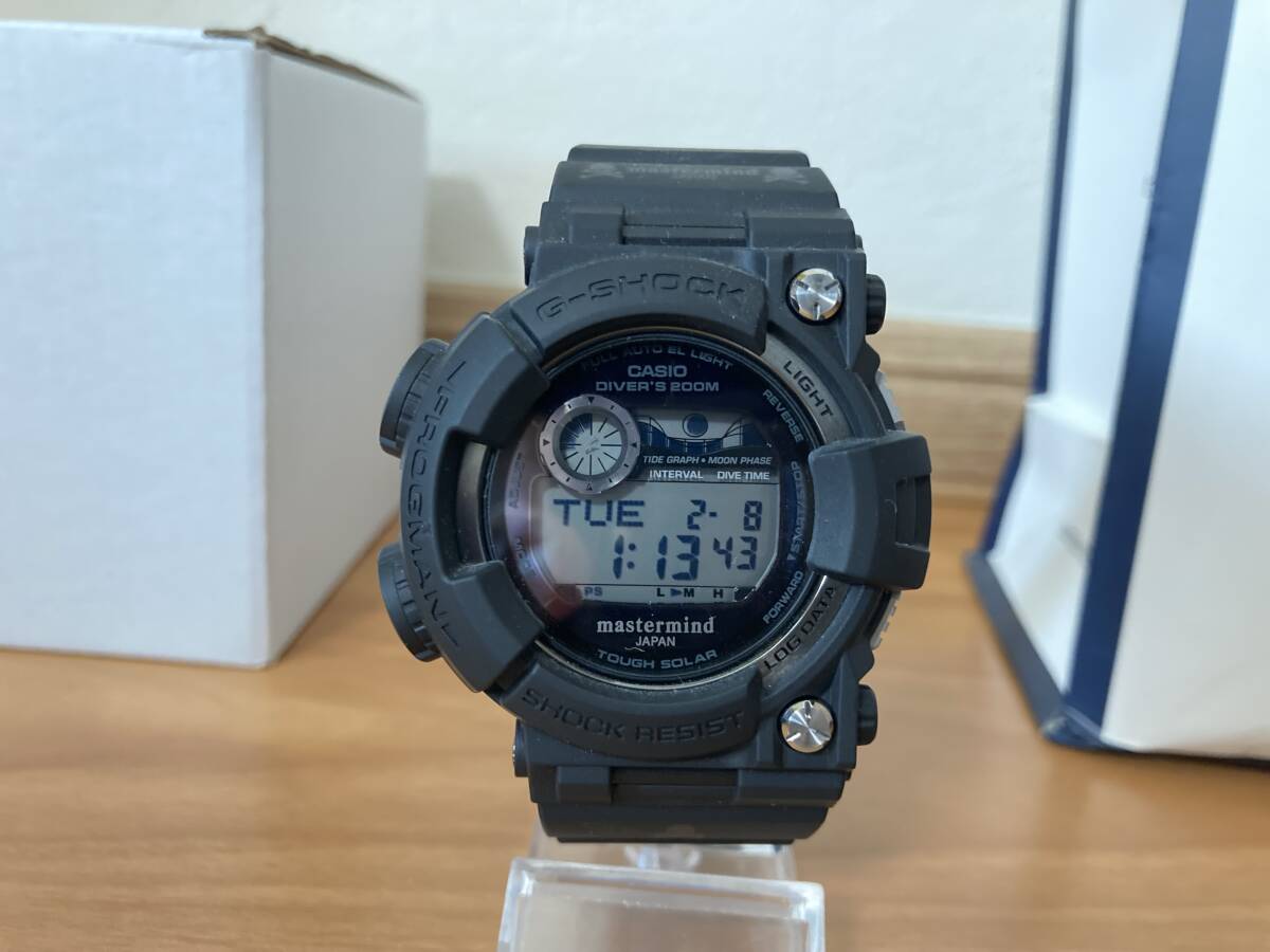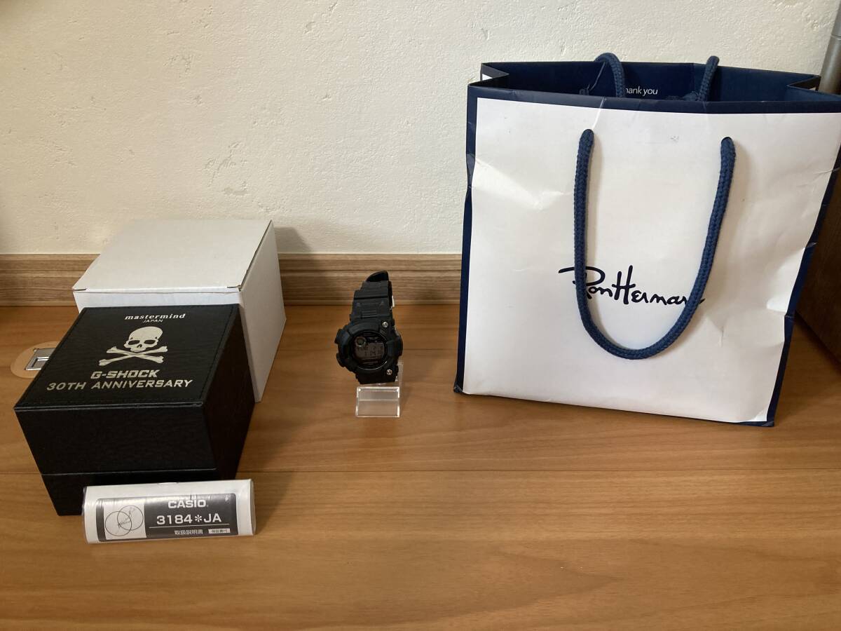ロンハーマン千駄ヶ谷200個限定 MASTERMIND×G-SHOCK FROGMAN 30th ANNIVERSARY「GWF-1000MM-1JR」 、未使用、箱付き、取説付き(保証書の印無し)写真のものがすべてです。紙袋は、購入当時の状態です。(シワあります。)当オークションで購入しました。購入後は、ソーラー充電の時以外は、暗所にて保管しておりました。試着も含め使用はしていません。個人所有品のため、保管年月による変色、変質、動作不良等の経年劣化が起きてる場合があるかもしれません。状態は、写真にて御判断お願いします。仕事の関係で、発送までに1週間程度かかる場合があります。落札後はノークレーム、ノーリターンでお願いいたします。 令和7年6月にメーカーで電池交換をしました。