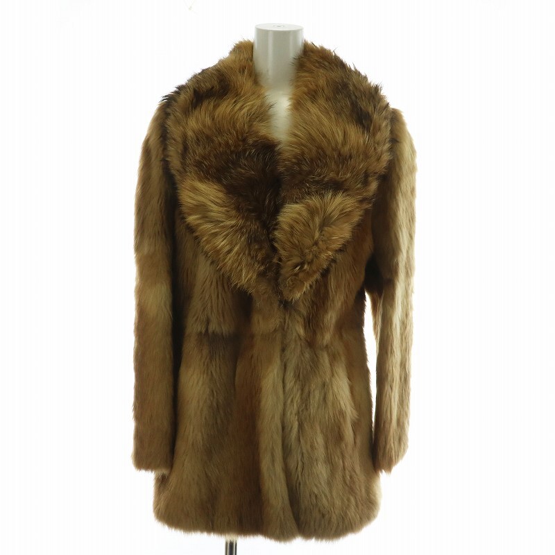 ノーブランド ファーコート アウター 毛皮 フォックス ミドル 13 XL 茶色 ブラウン /XZ ■GY17 レディース