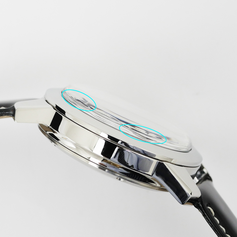 プラスチック風防に傷あり。ケース、裏蓋に僅かな擦り傷あり。