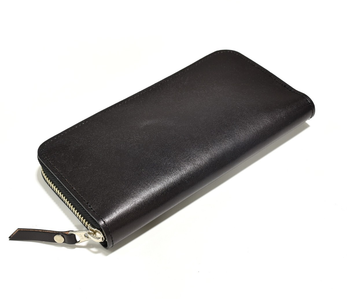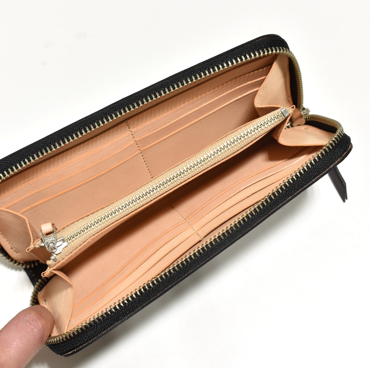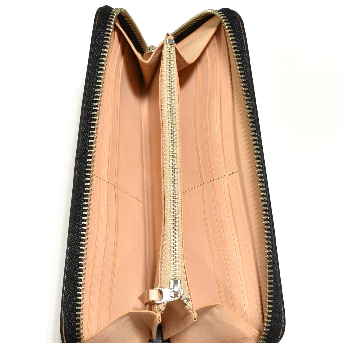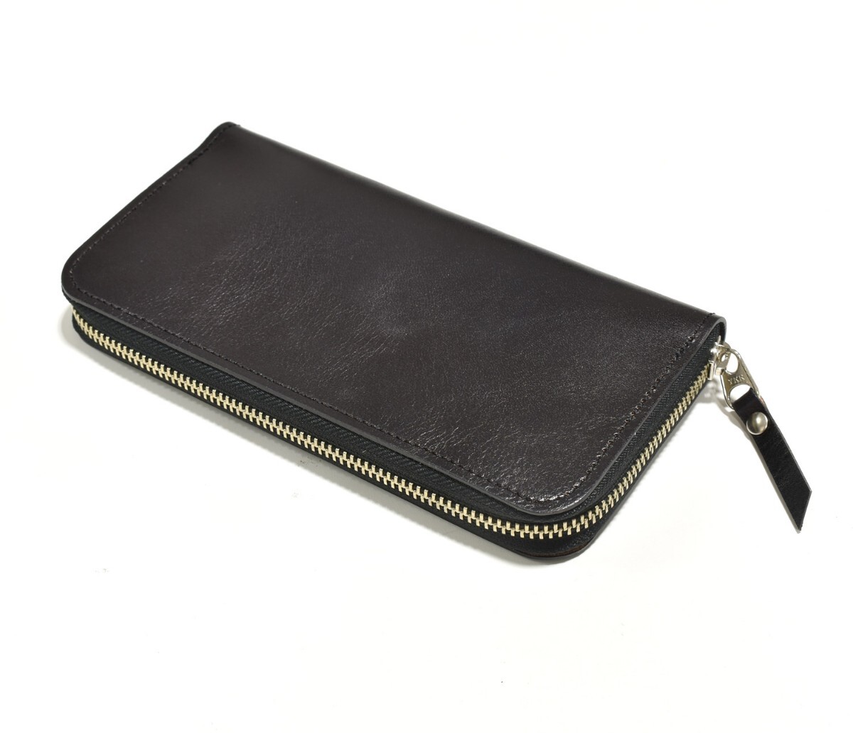 天然皮革なので使うほどに味わいが増す国産ラウンドファスナー長財布。