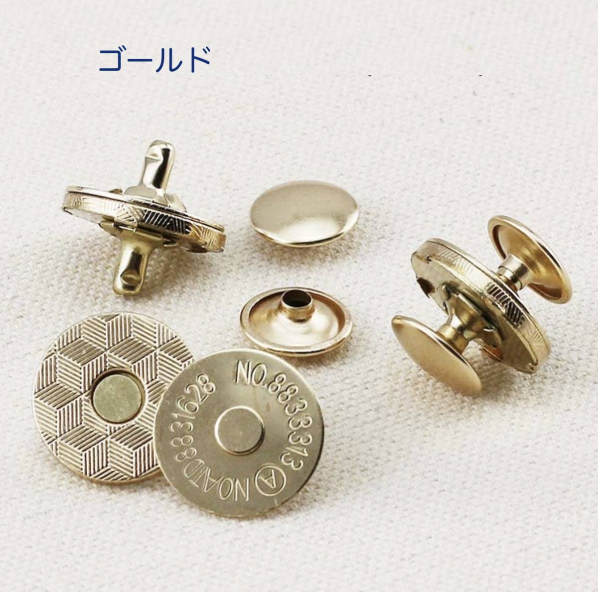 薄め型 マグネットホック 5セット ゴールド  14mm  両面カシメ式 ハンドメイド 手芸 手作り バッグ ポーチ ホック 磁石ボタン