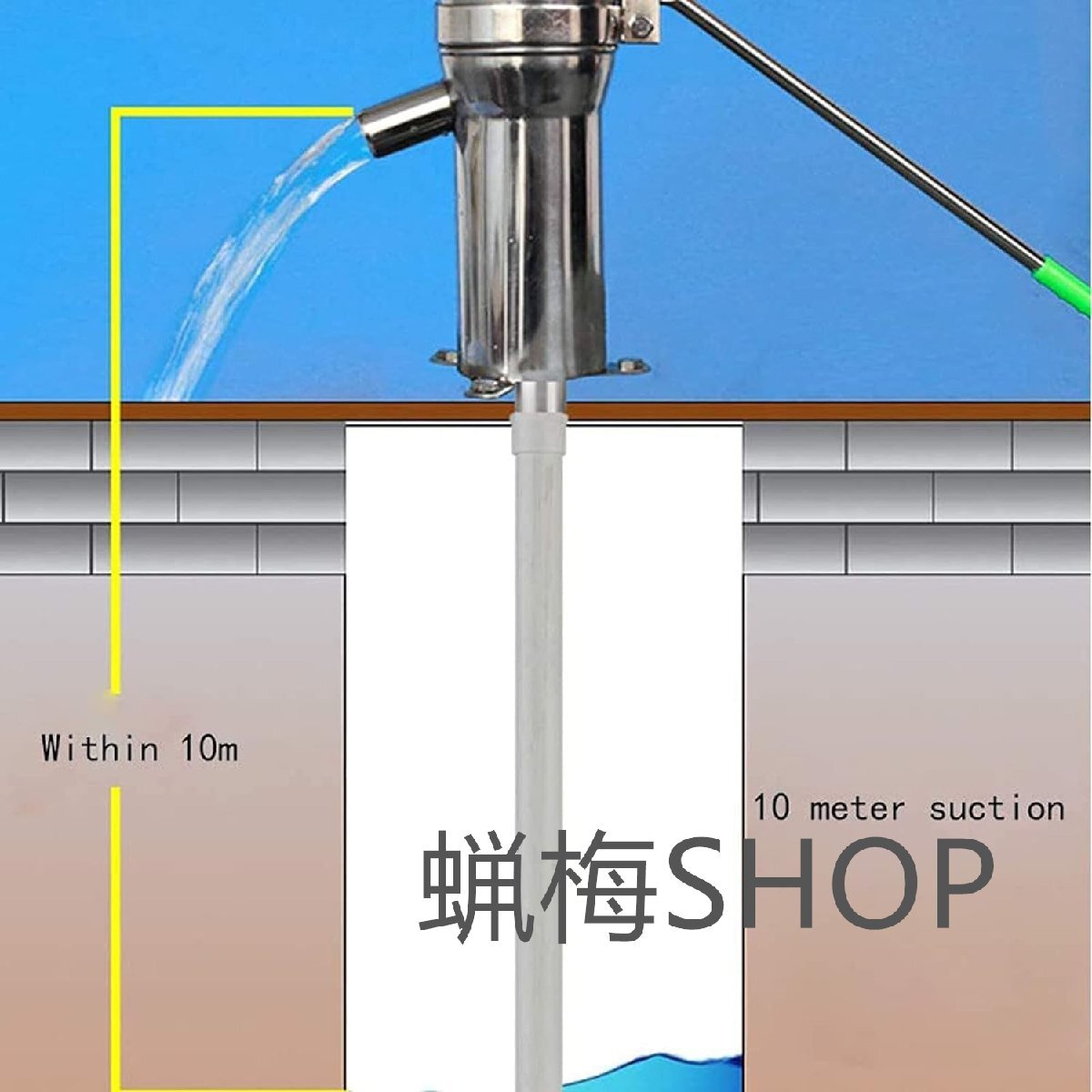 【ポンプクランクポンプ】:すべて一体型のプレス部品を使用し、より大きなハンドルは溶接されていないステンレス鋼で形成されています。頑丈なハンドルは壊れにくく、耐久性があります。