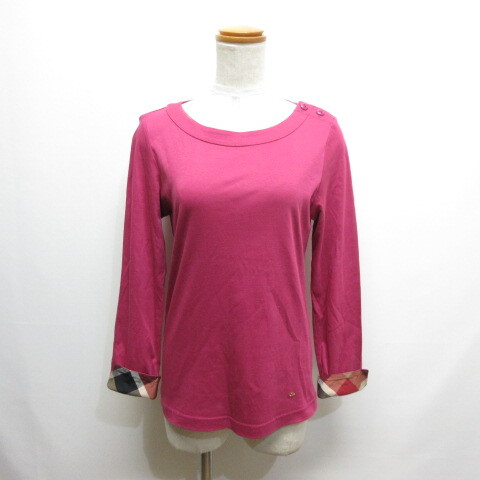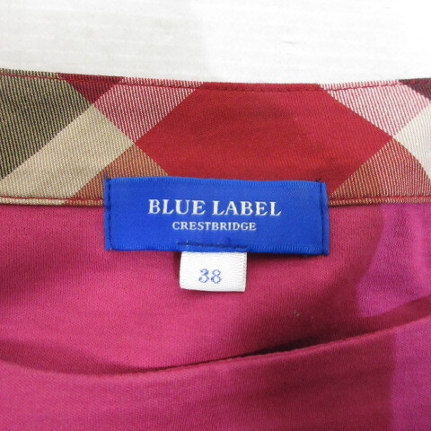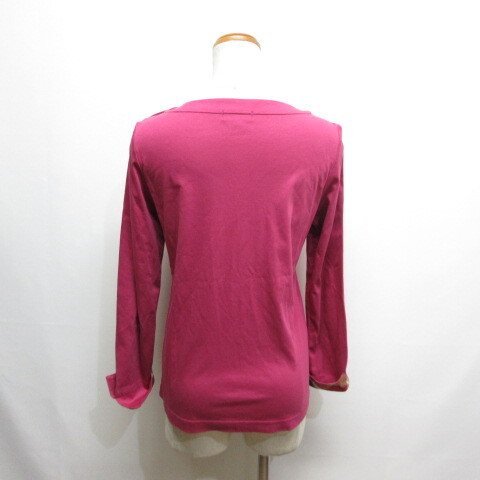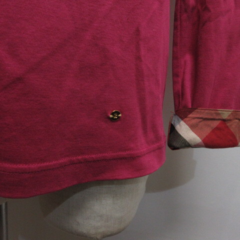 ブルーレーベルクレストブリッジ BLUE LABEL CRESTBRIDGE 長袖 カットソー 38 濃ピンク 袖折返しチェック柄 コットン レディース