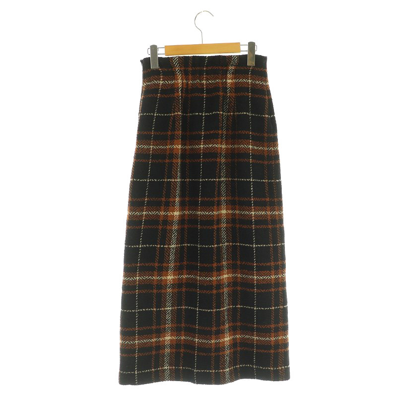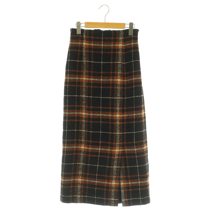 ミラオーウェン Mila Owen チェック柄サイドベンツロングスカート ツイード タイト スリット 0 ブラック ブラウン /MY ■OS レディース