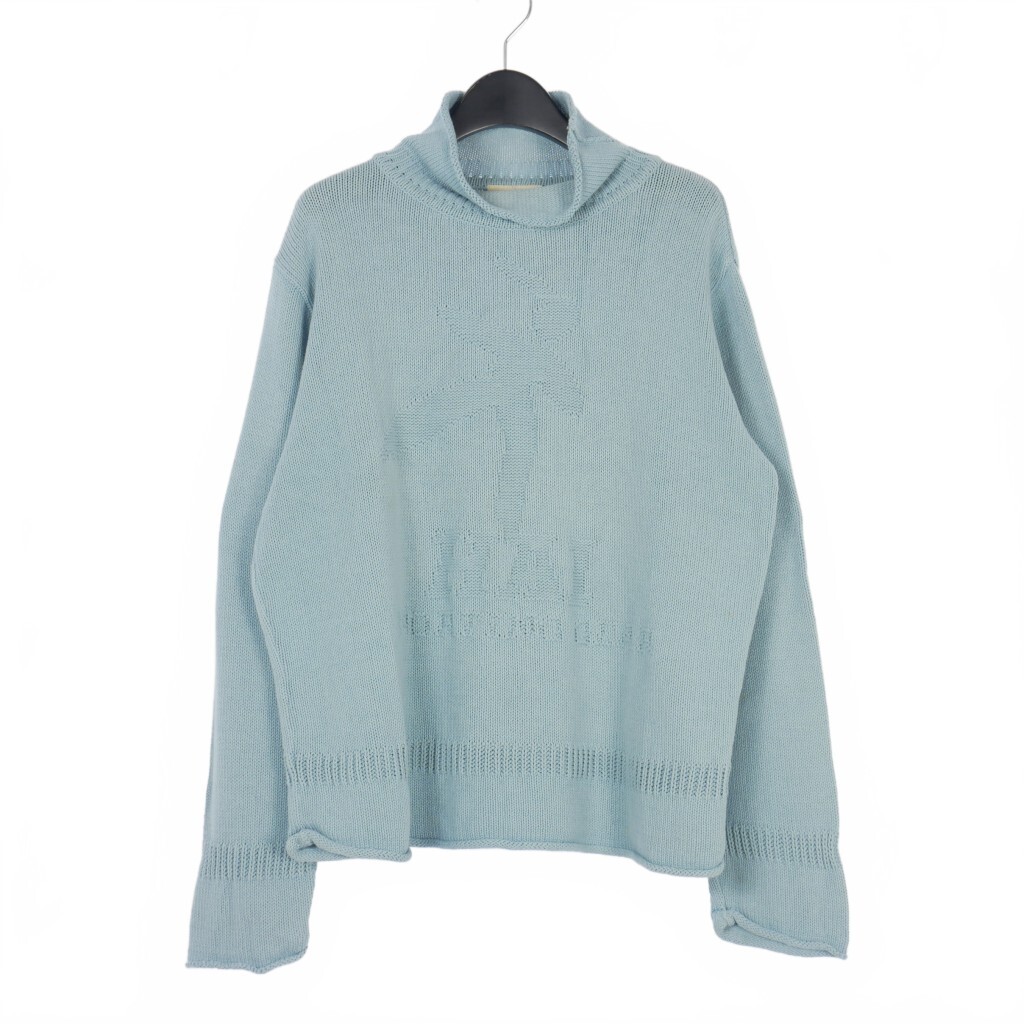 ハイスポーティングギア HAI SPORTING GEAR 80s ロゴ ジャガード クルーネック ニット セーター M ブルー 青 A110 レディース