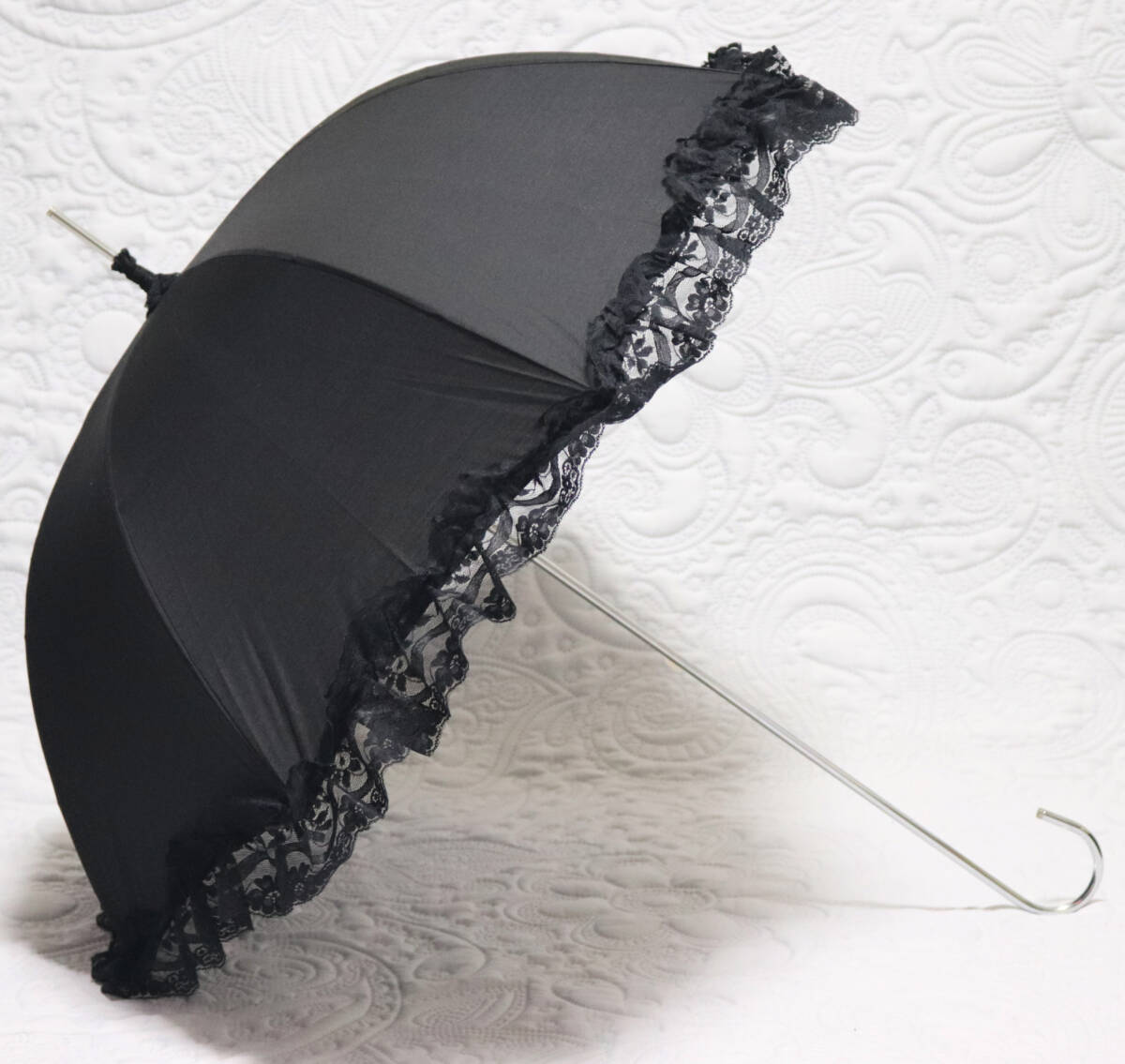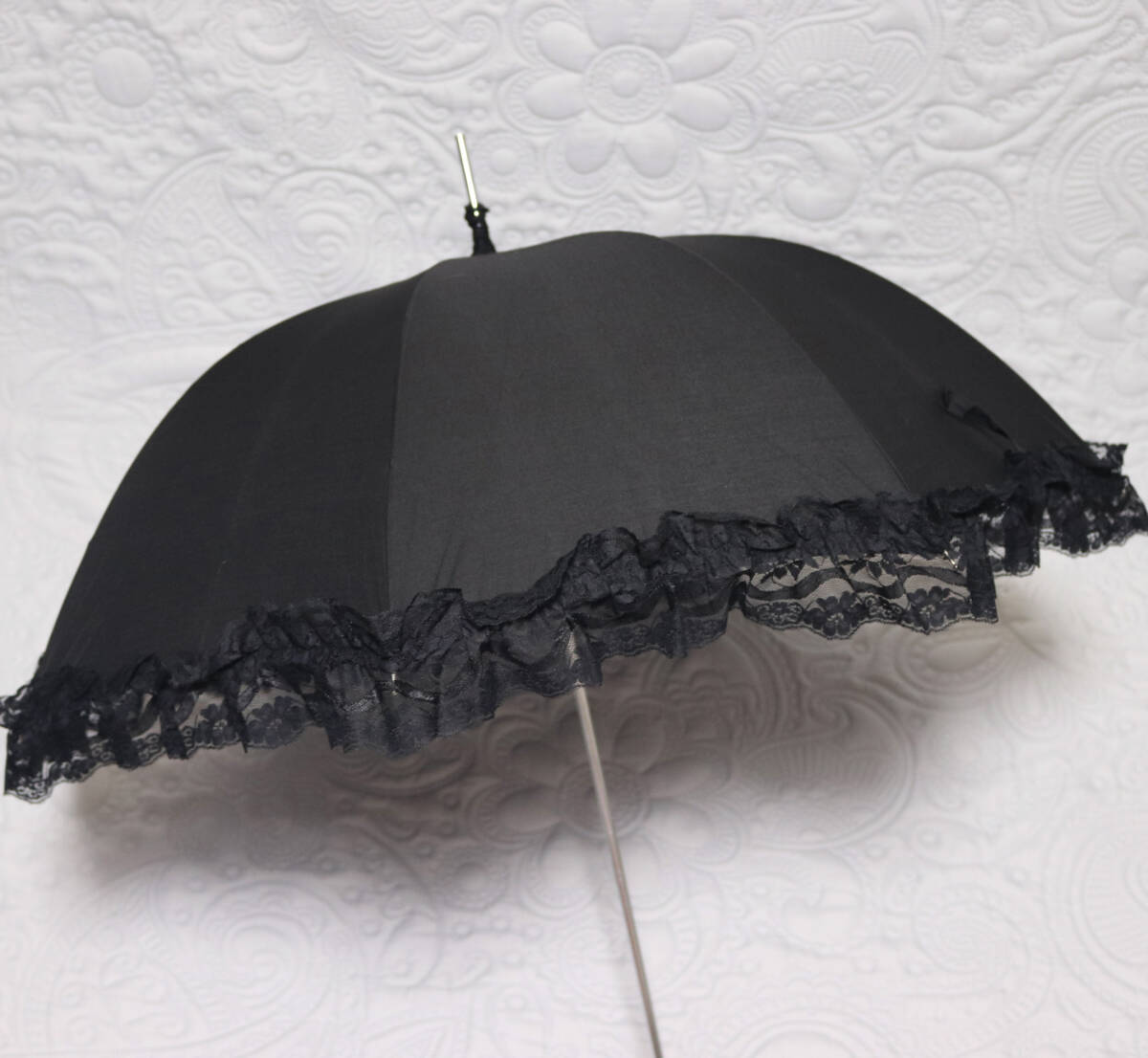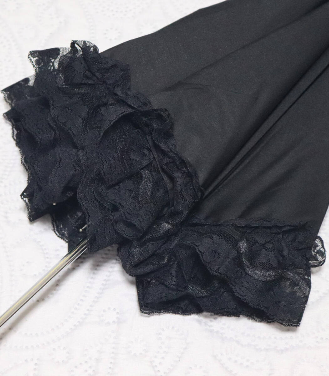 | 新品【晴雨兼用 長傘】ドーム型 フリルレース 雨傘 日傘 黒 v7126 |