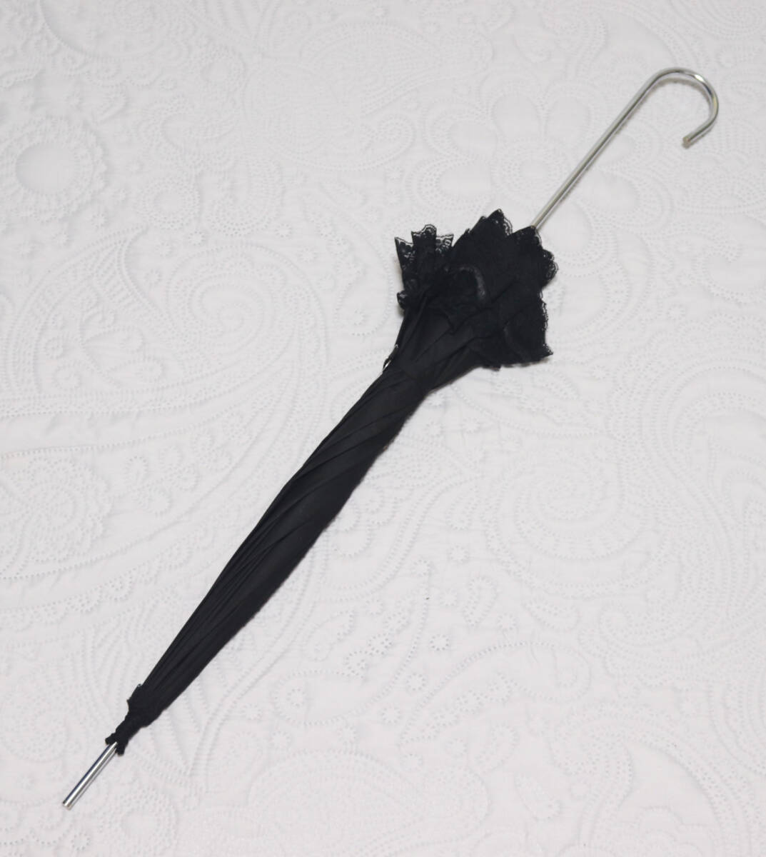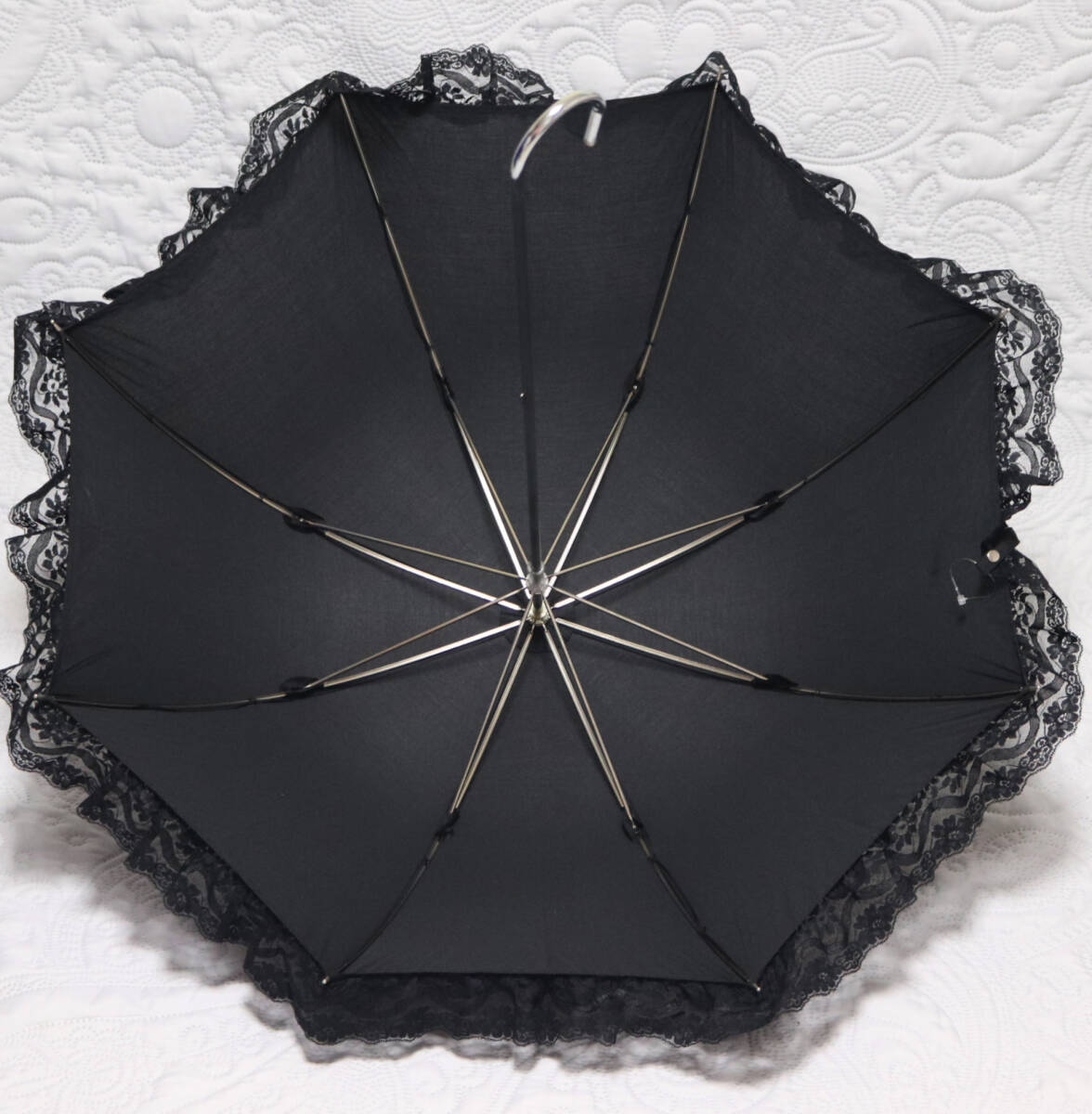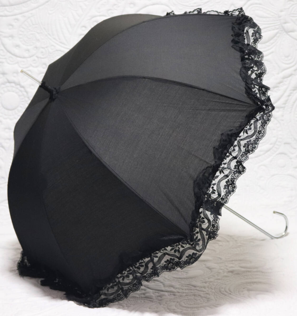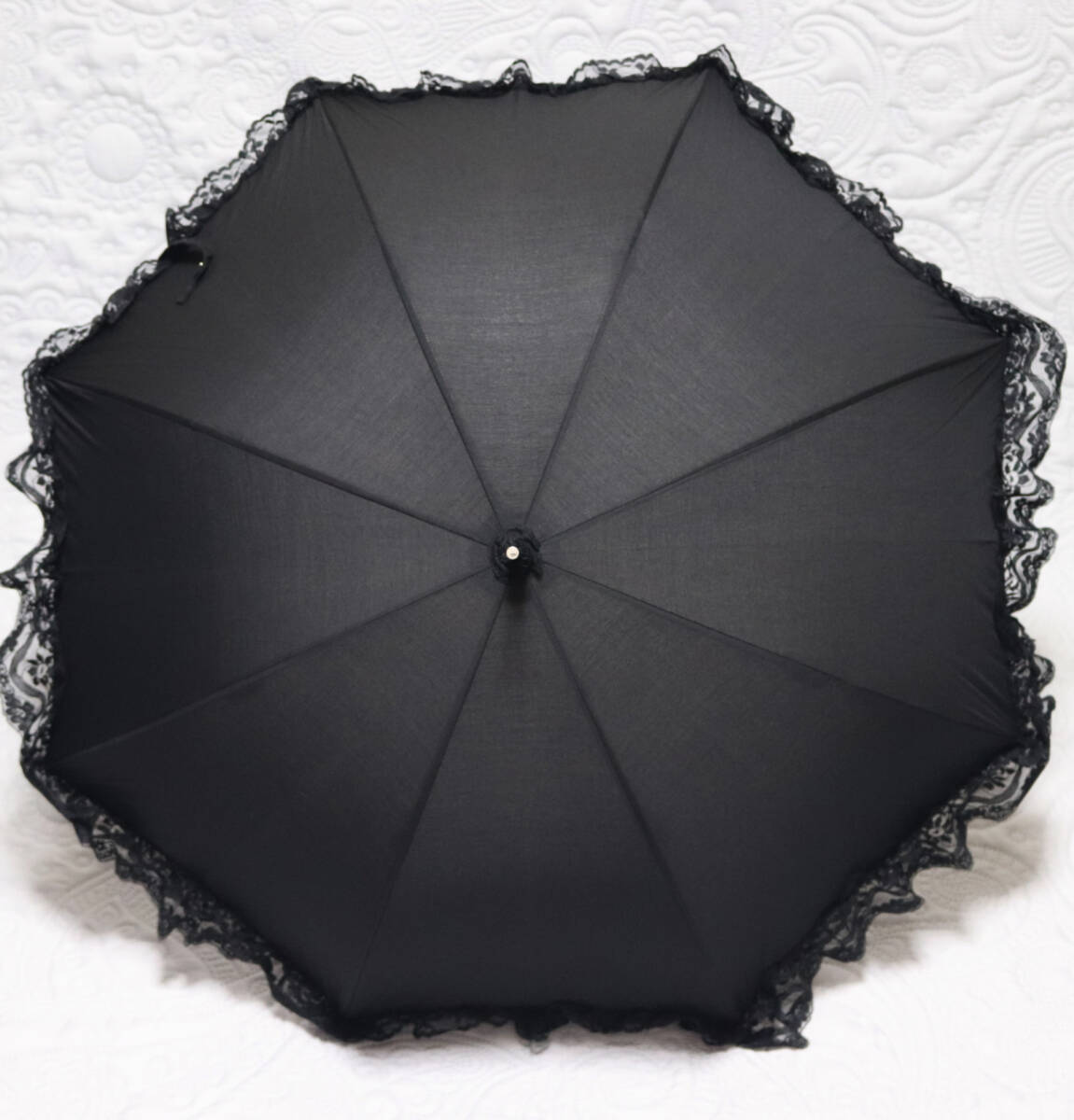 | 新品【晴雨兼用 長傘】ドーム型 フリルレース 雨傘 日傘 黒 v7126 |