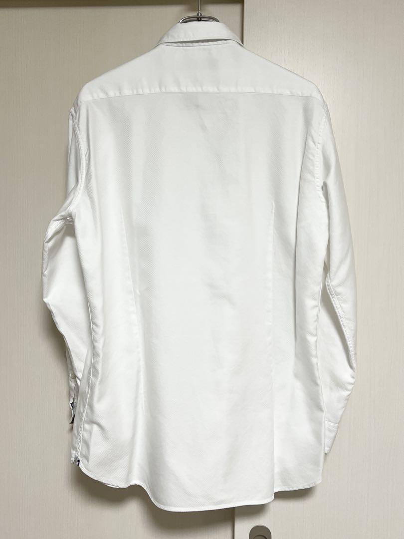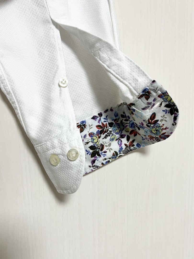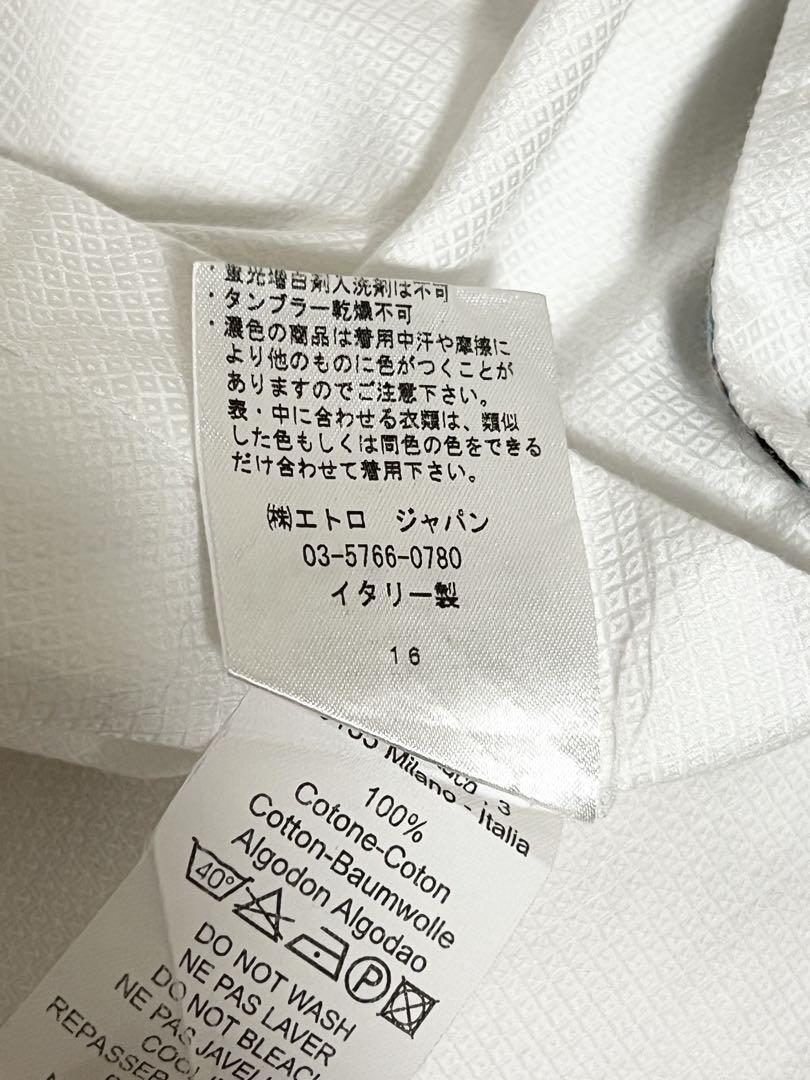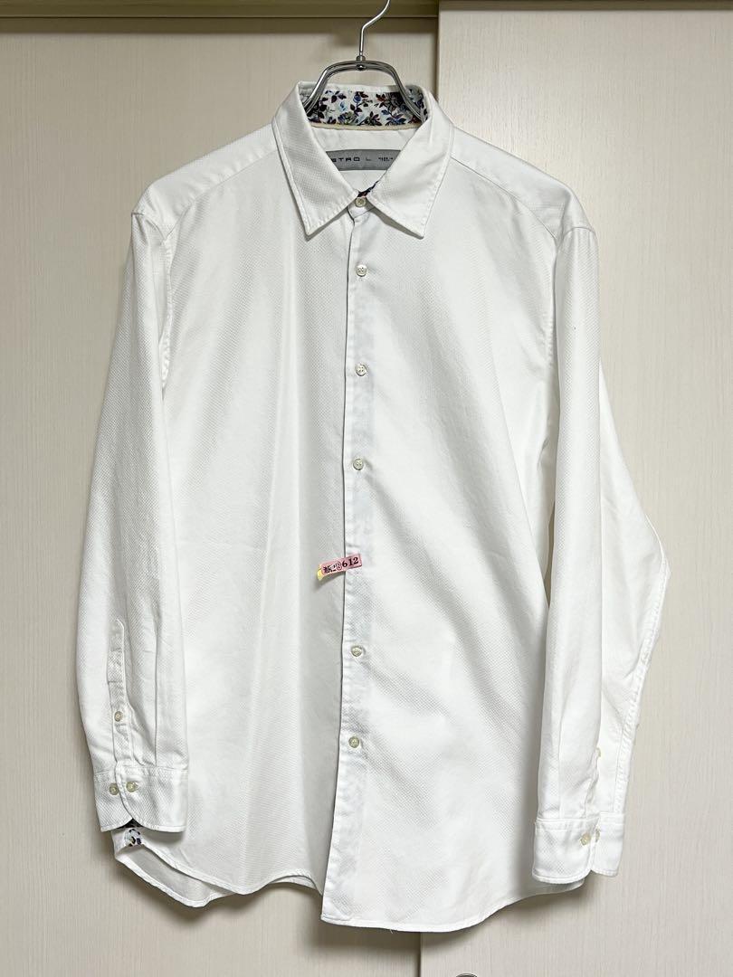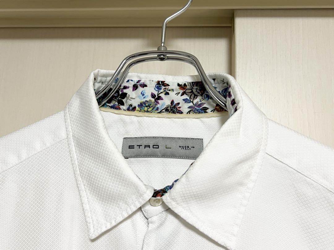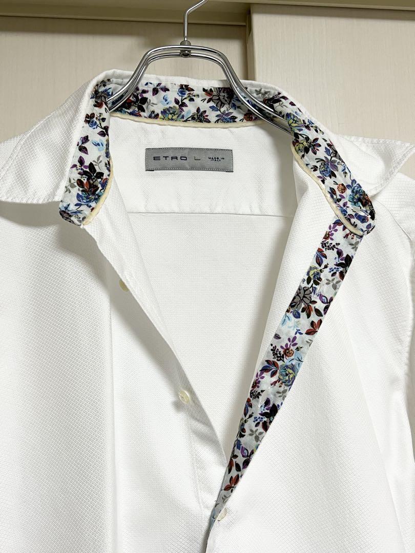 即決★美品 イタリア製 ETRO★L ドレス無地シャツ エトロ 白 ホワイト 花柄 コットン ビジネス