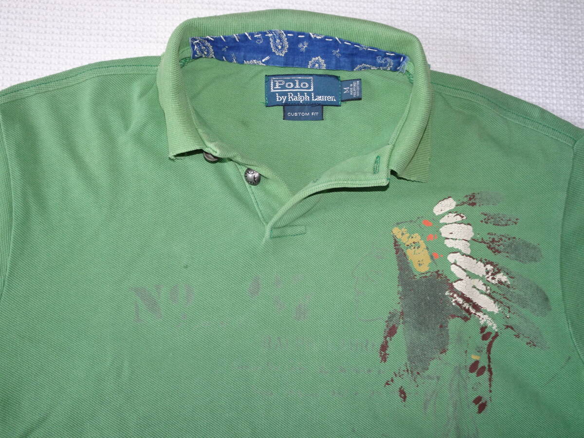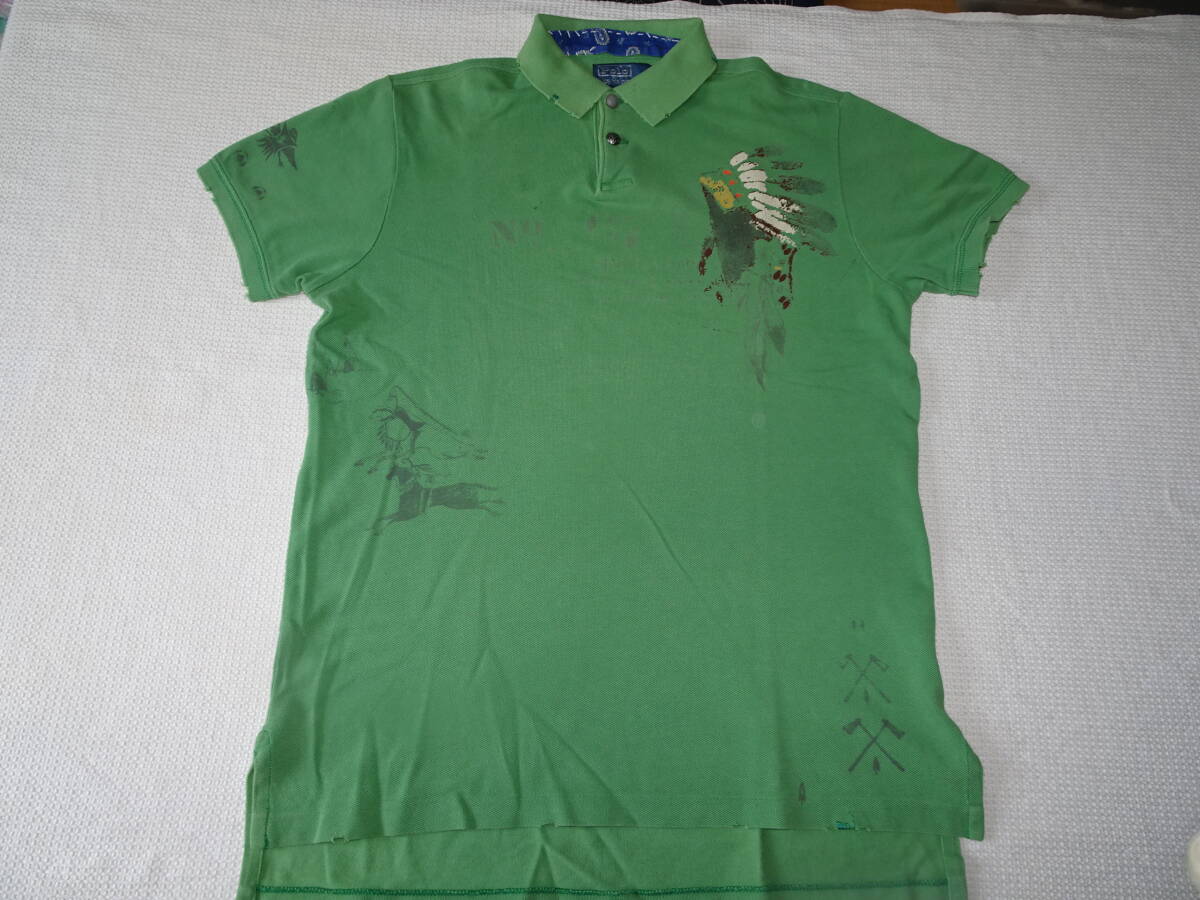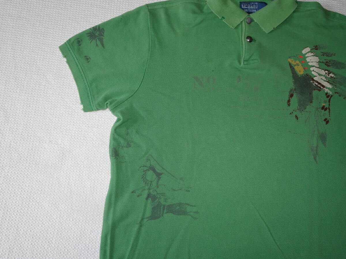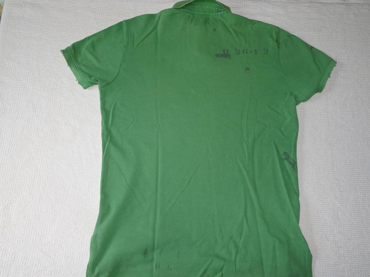 Polo Ralph Lauren ラルフローレン ダメージ加工の半袖 ポロシャツ SizeM グリーン系 (ユーズド)