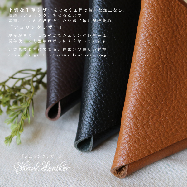 革の表面には傷やシワ、色ムラが見られますが、人工素材とは違う天然素材ならではの特徴をお楽しみください。