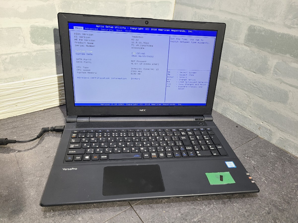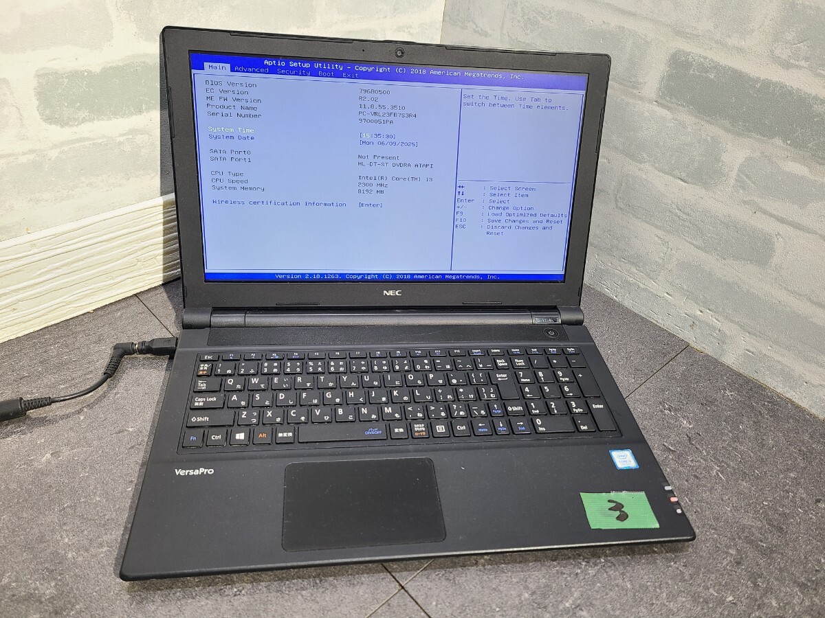 【現状品】管2Q37 NEC VersaPro VF-4 CPU core i3-7020U Bios起動OK HDD無し、HDDマウント有り、メモリー8GB、バッテリー有り 5台セット