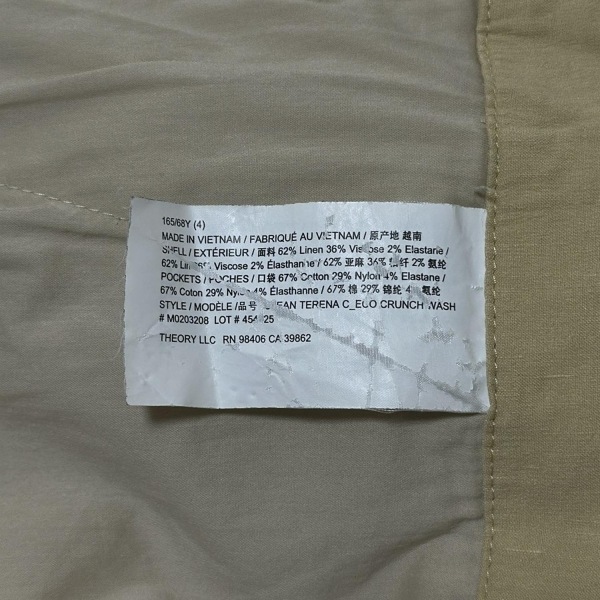 セオリー theory パンツ サイズ4 S - ベージュ レディース フルレングス ボトムス