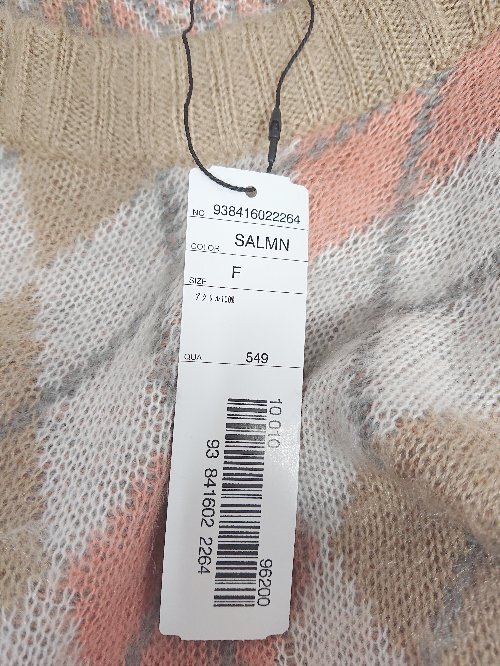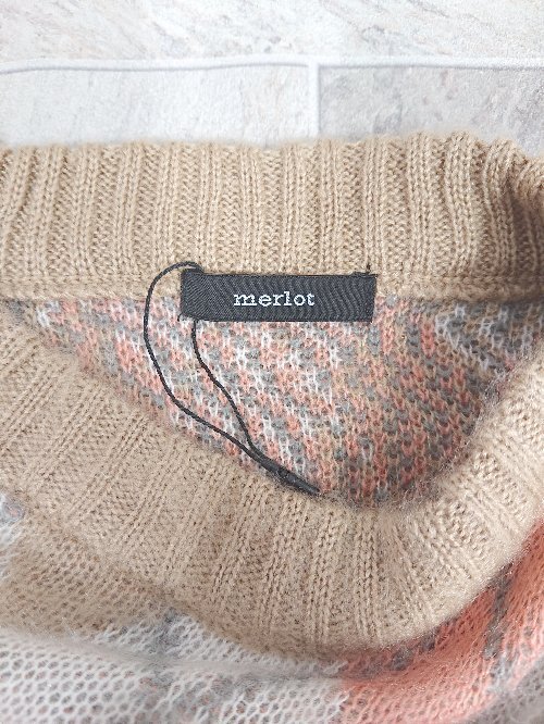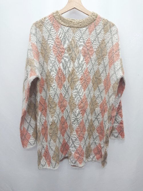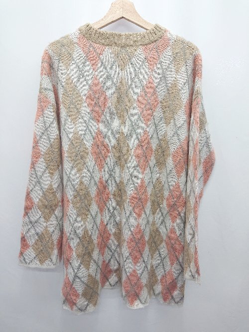 ◇ ⊇ ◎ ●未使用● merlot アーガイル 長袖 チュニック ニット セーター サイズF ホワイト ピンク ベージュ レディース E