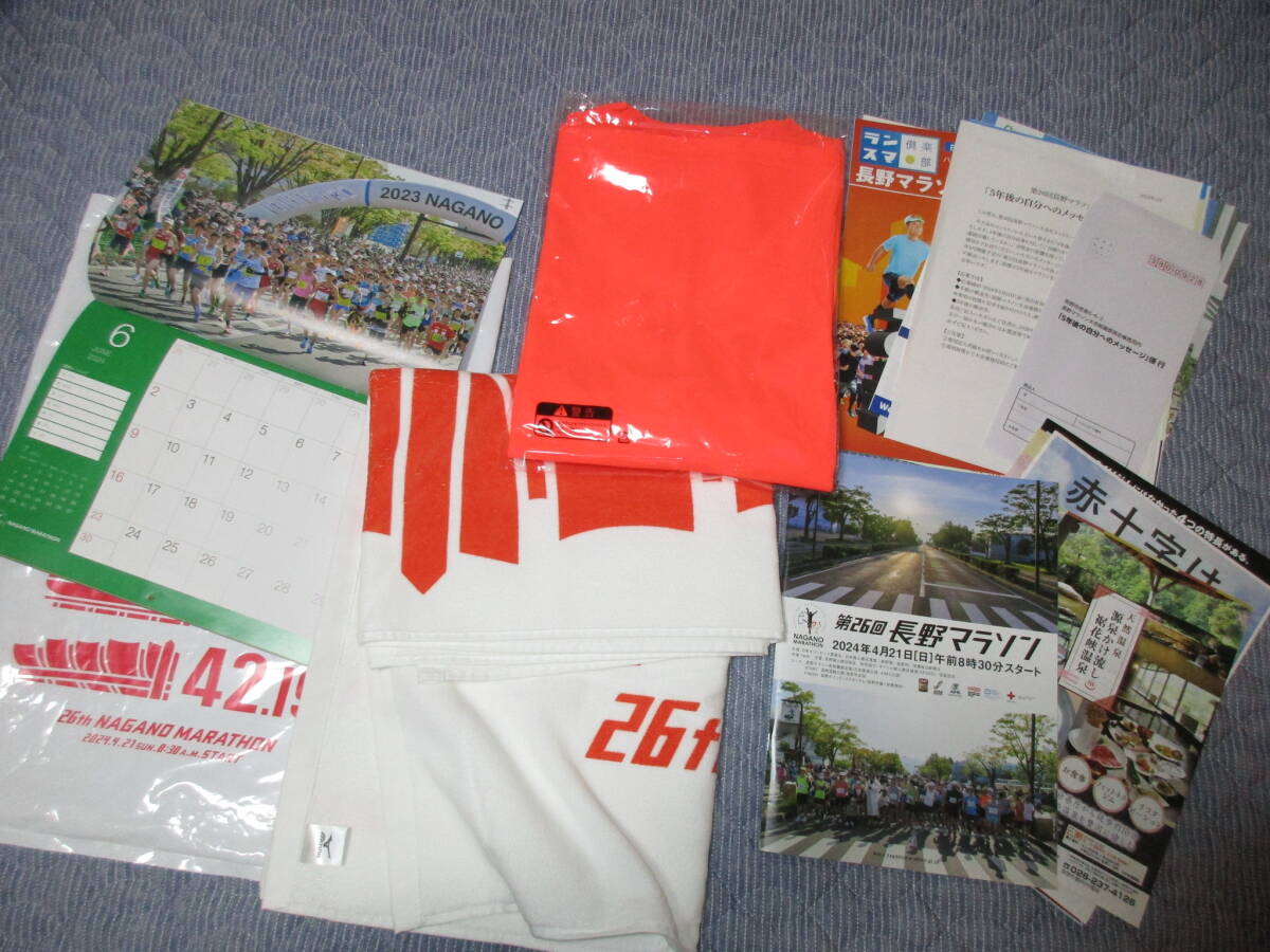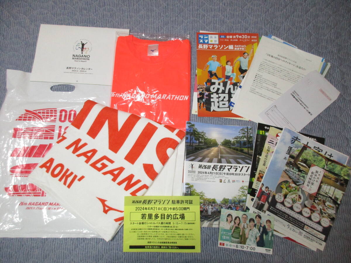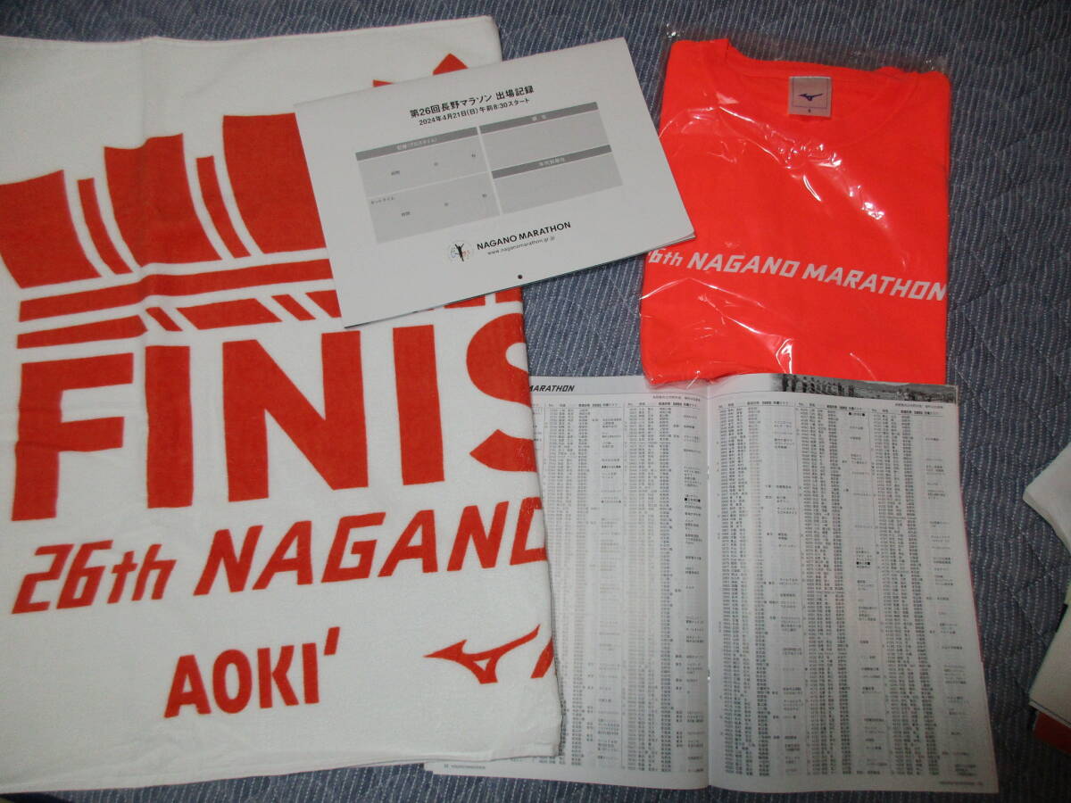 26回 長野マラソン 2024 ナガノマラソン 4/21 大会出場者記念品 ミズノ製 Tシャツ バスタオル メダル Sサイズ 未使用品 ランニング 駅伝 マラソン