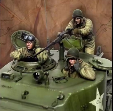 WW2 世界大戦 1/35 アメリカ軍 戦車兵 歩兵 3名 タンククルー 樹脂 模型 レジン フィギュア 未塗装 未組み立て 世界大戦 TR V941