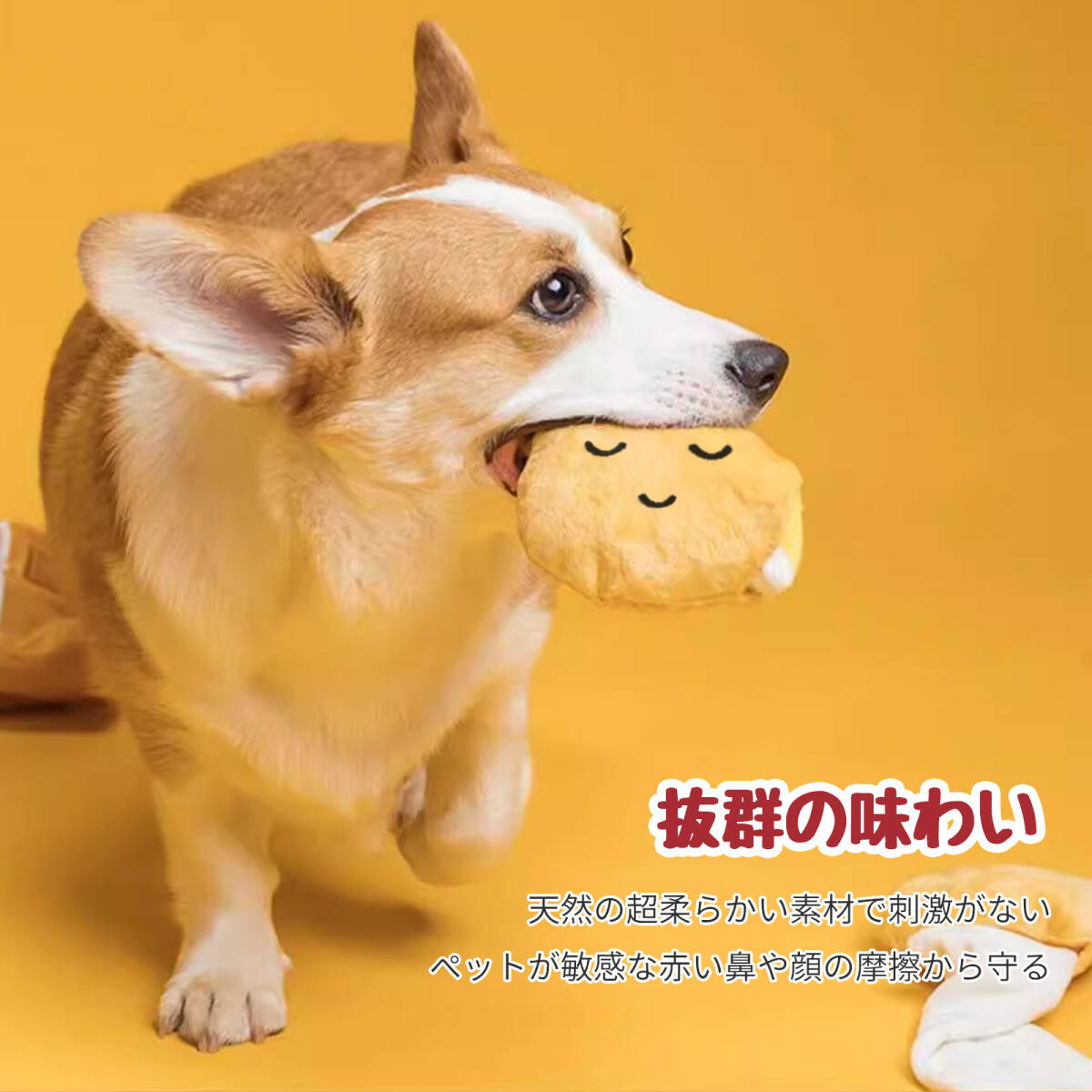 | 商品について | 1、【歯のケア】:この製品を噛み千切りすることで、歯を清潔にし、歯肉をマッサージするだけでなく、ペットのストレスを軽減し、活力を発散させ、家具の破損を防ぐことができます。 2、【柔らかい素材】:柔らかいモケット素材を使用し、縫い目が細かく、手触りが心地良く、肌に優しい感触で、引き裂きや噛み千切りに強いです。 3、【食事速度の制御】:スナックをポテトチップス袋に隠して、ペットの食事時間を効果的に延長できます。食事速度をコントロールしながら、ペットの知能発達を刺激することも可能です。 |