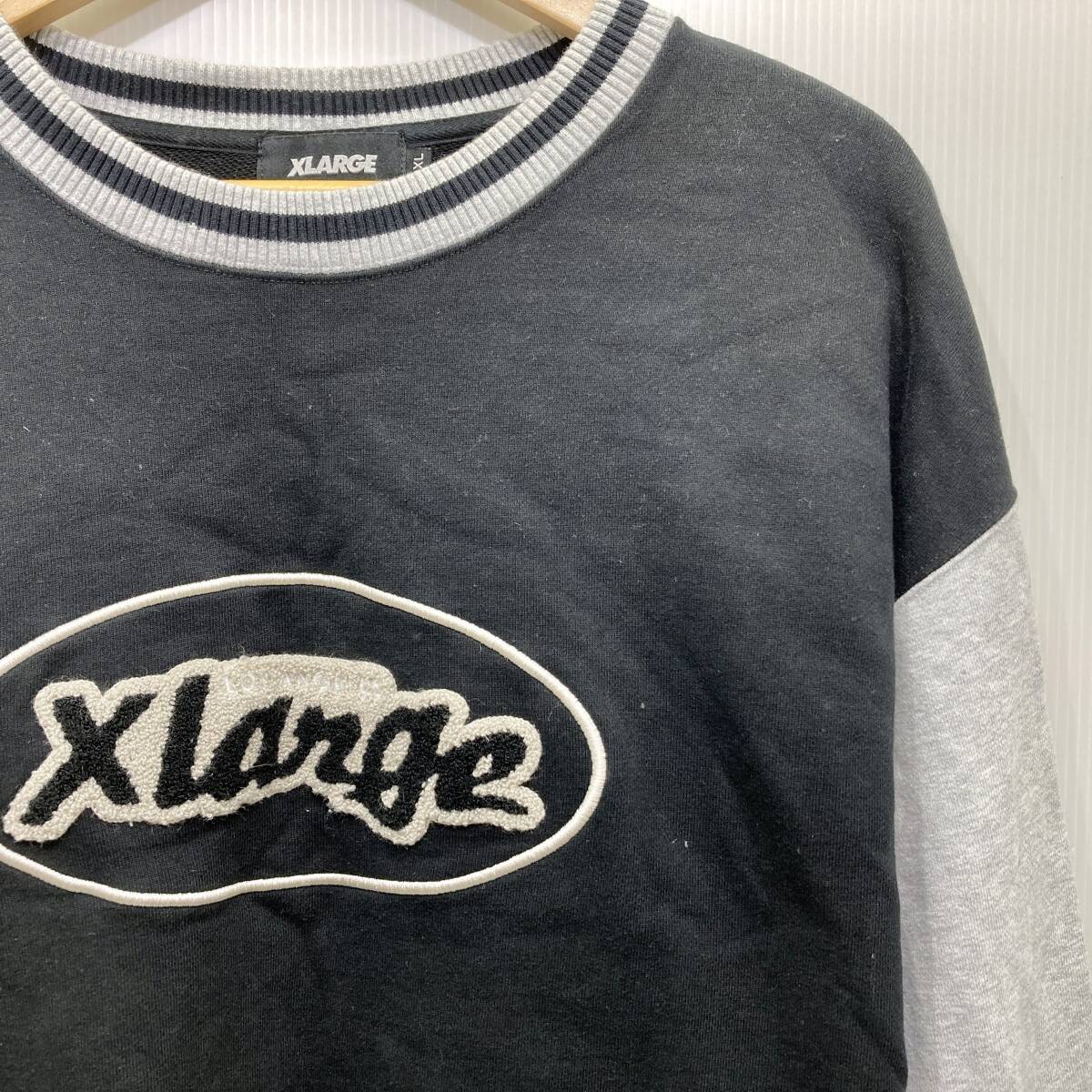 【中古】XLARGE エクストララージ RETRO CREWNECK SWEAT 101223012011 XLサイズ グレー×ブラック レトロクルーネックスウェット