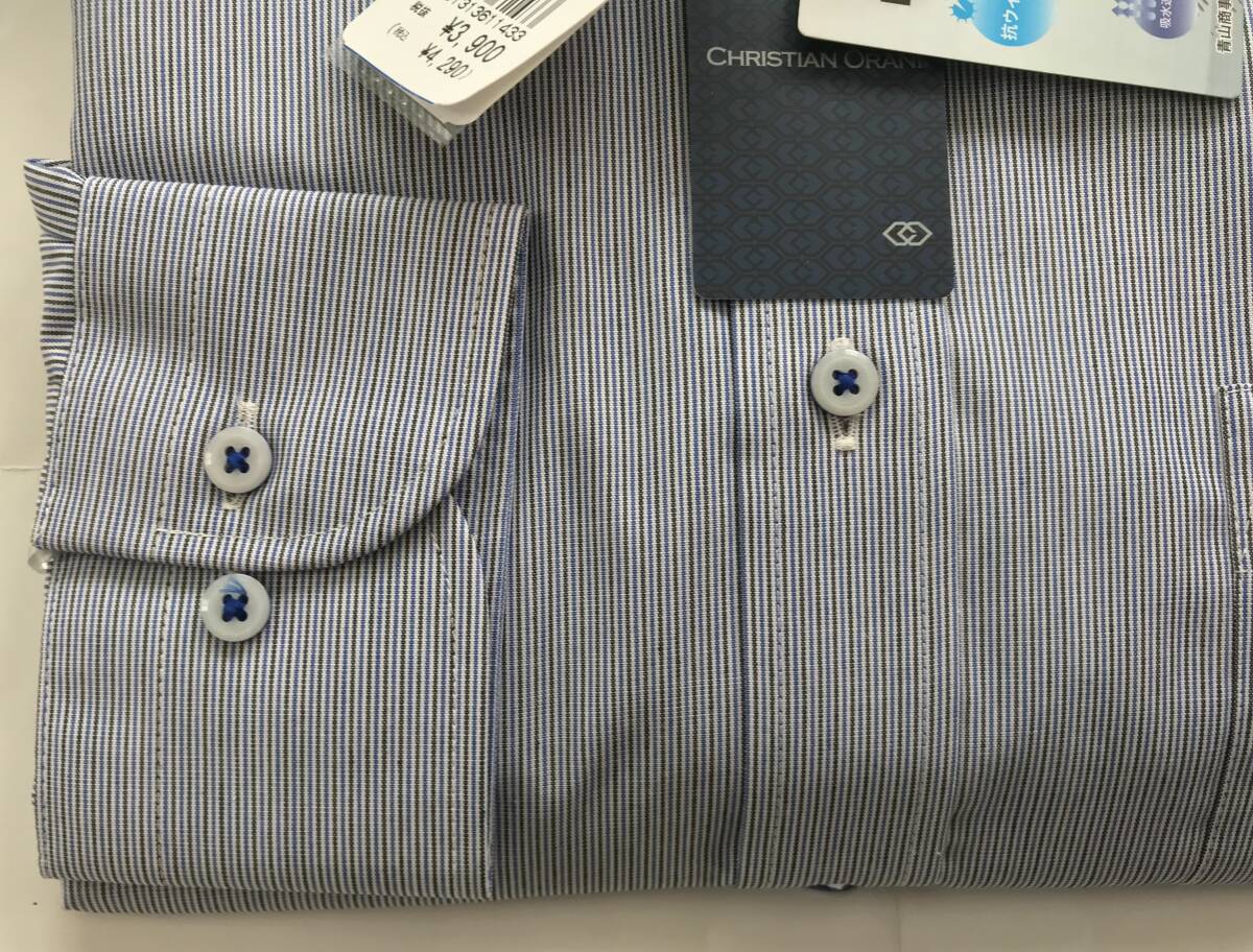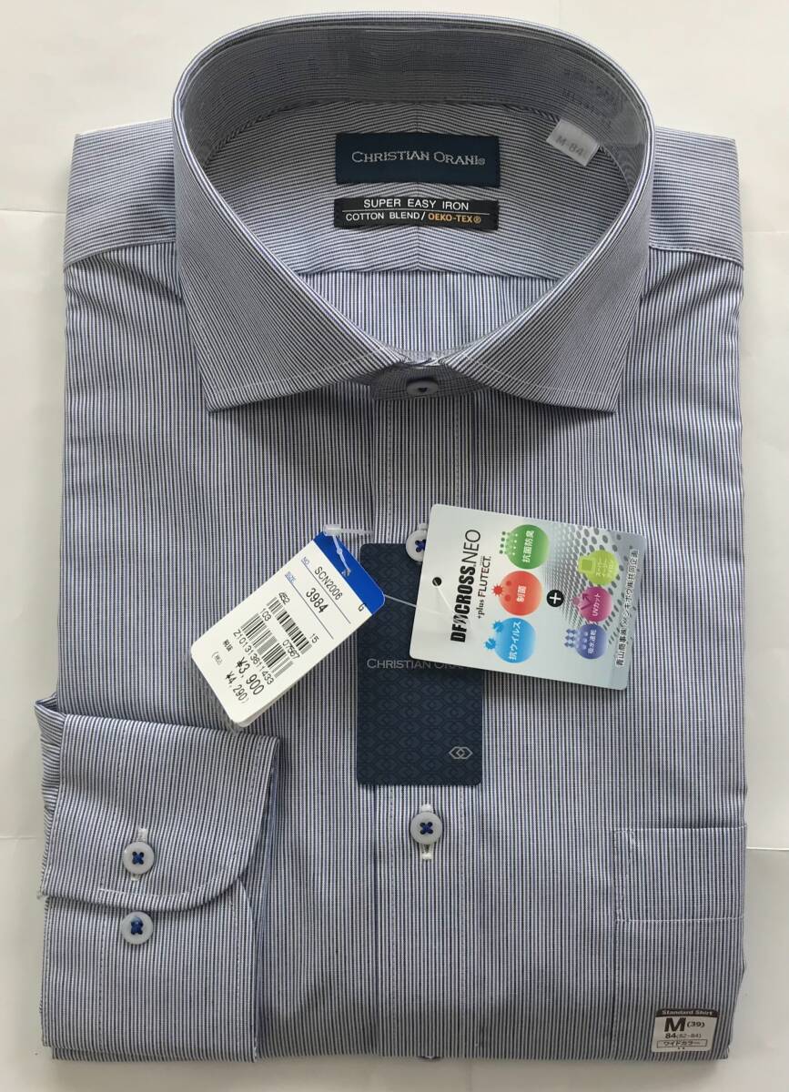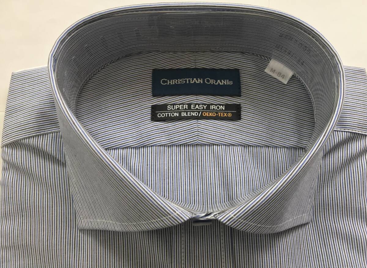 新品 4,290円★糸から厳選生地★CHRISTIAN ORANI★sizeM 39-84★ワイドカラー ストライプ★UVカット 制菌 抗菌防臭 形態安定ビジネスシャツ