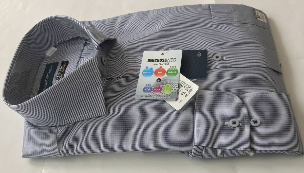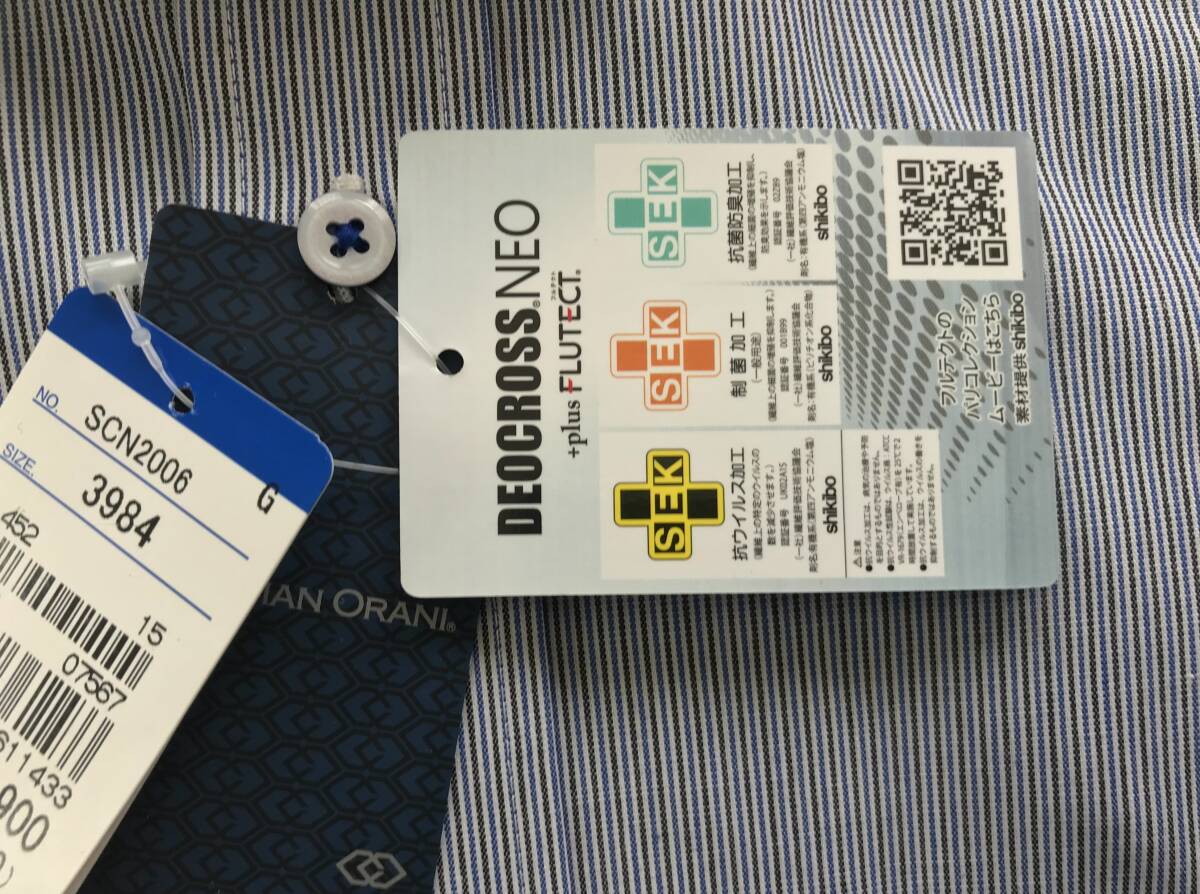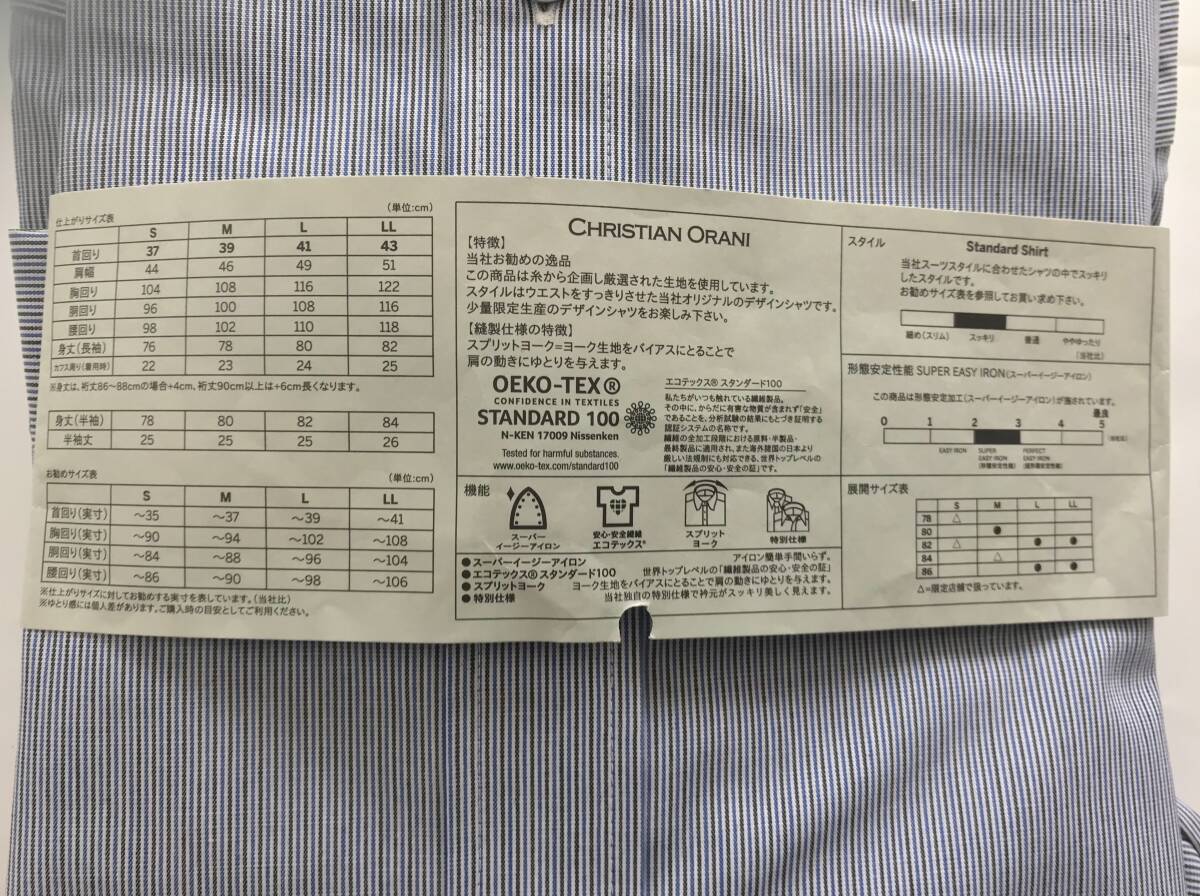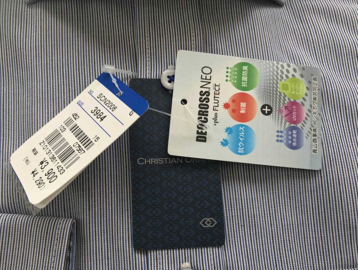 新品 4,290円★糸から厳選生地★CHRISTIAN ORANI★sizeM 39-84★ワイドカラー ストライプ★UVカット 制菌 抗菌防臭 形態安定ビジネスシャツ