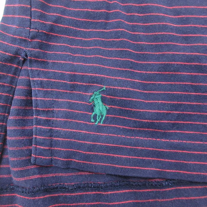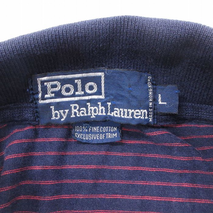 【商品名】 L★古着 ラルフローレン 長袖 ブランド ポロ シャツ メンズ 90年代 90s 裾ロゴ コットン 紺他 ボーダー【spe】