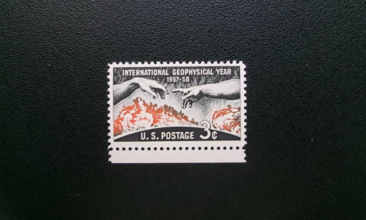 アメリカ合衆国1958年発行 アダムの創造(ミケランジェロ)など国際地球観測年切手 1種完 NH 凹版印刷 未使用美品です。