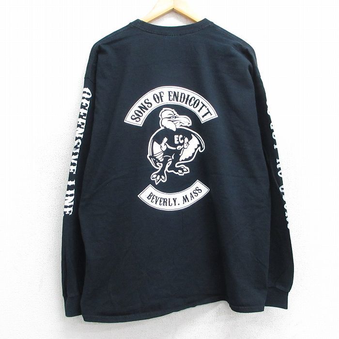 【商品名】 XL★古着 長袖 ビンテージ Tシャツ メンズ 00年代 00s スカル 鳥 コットン クルーネック 黒