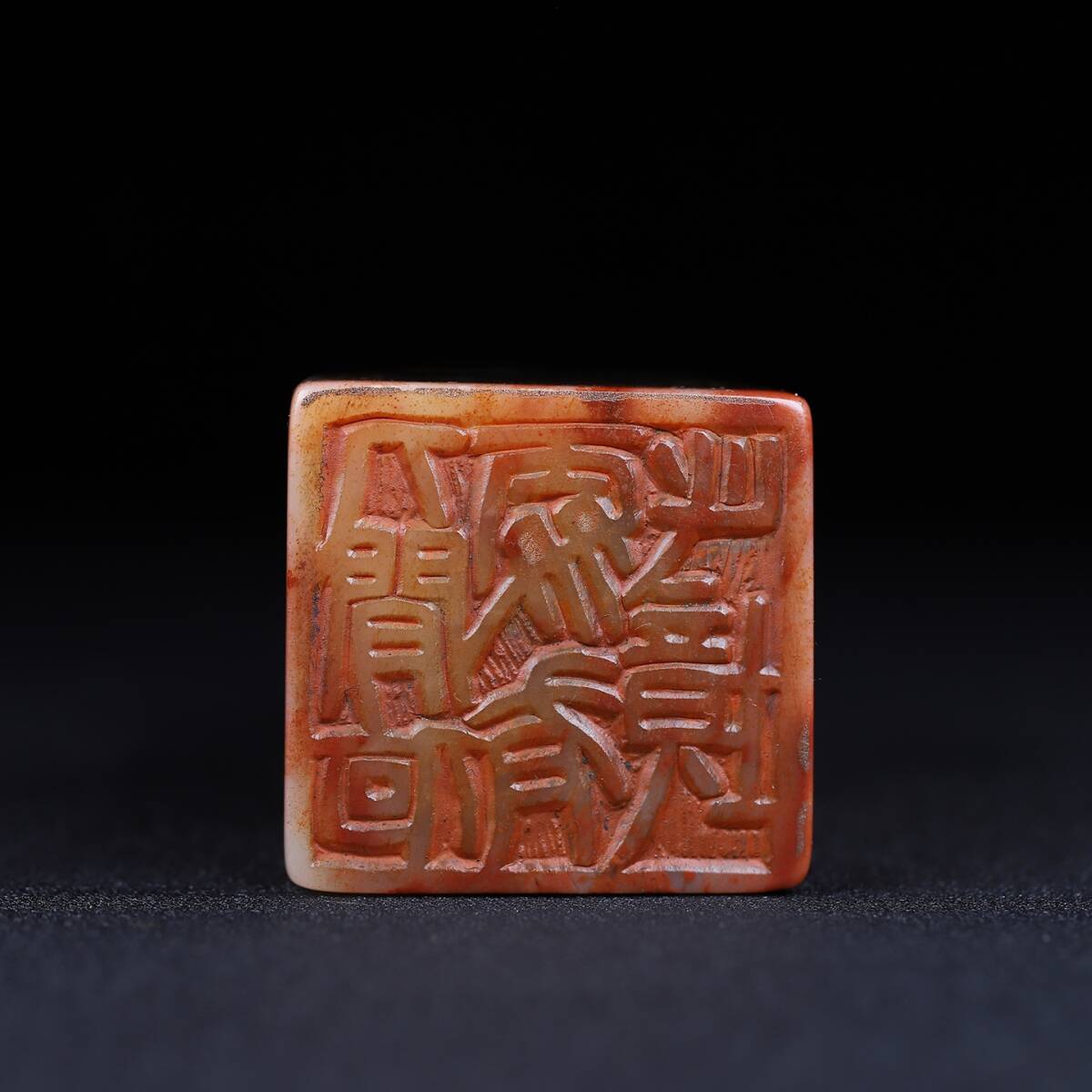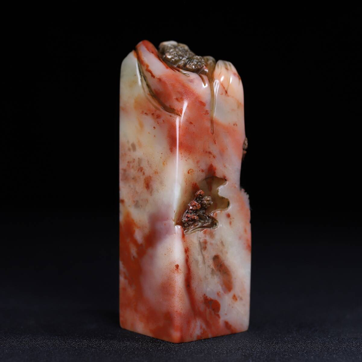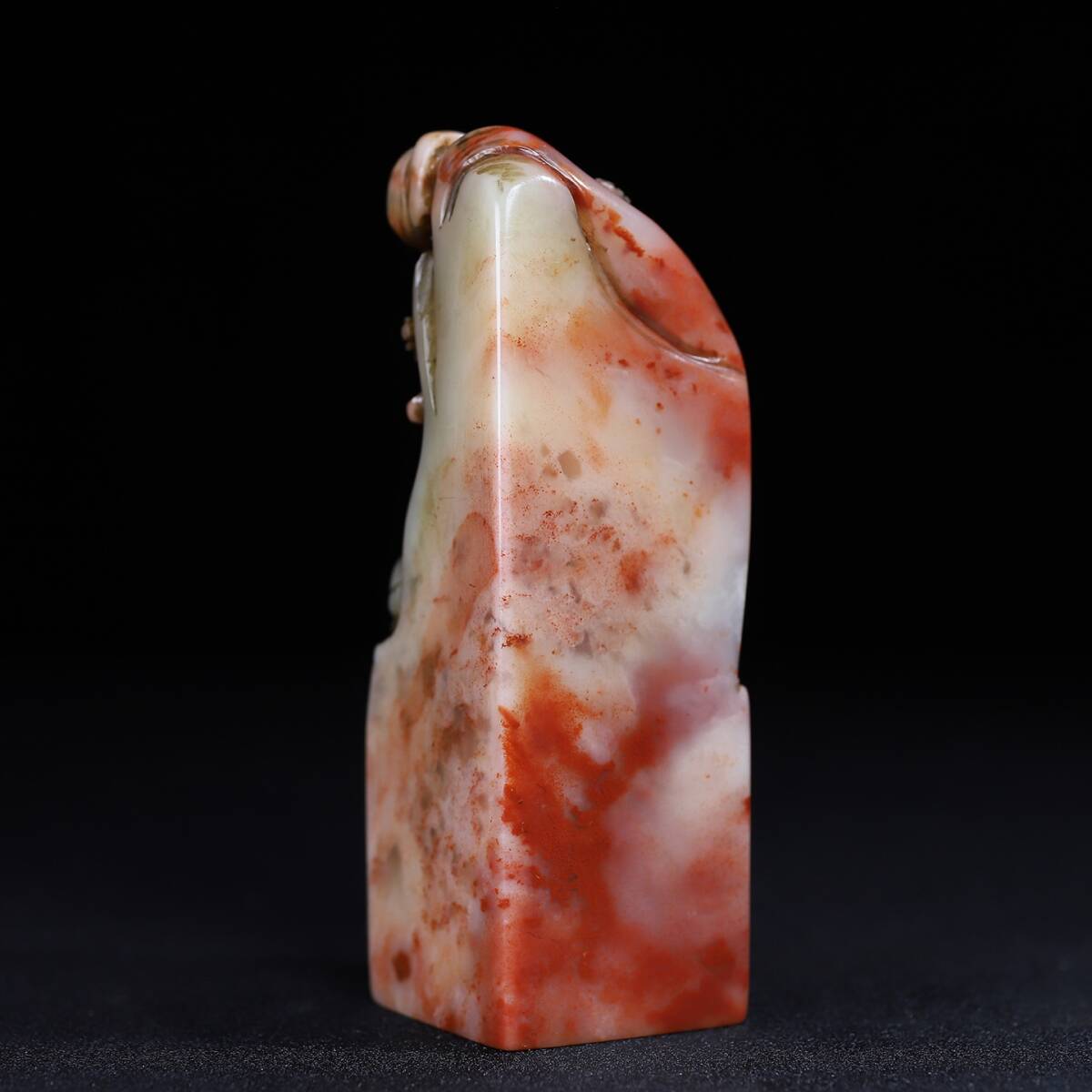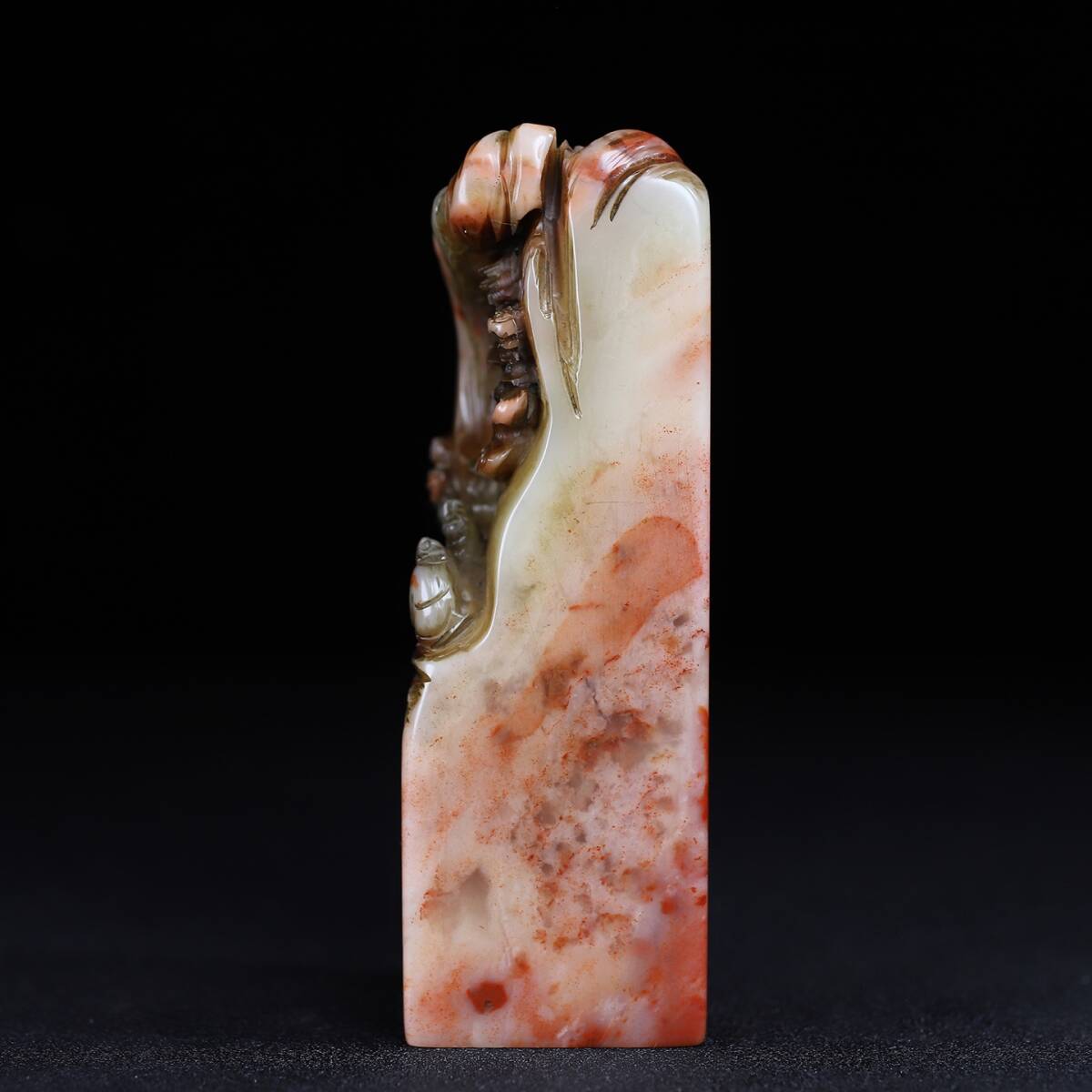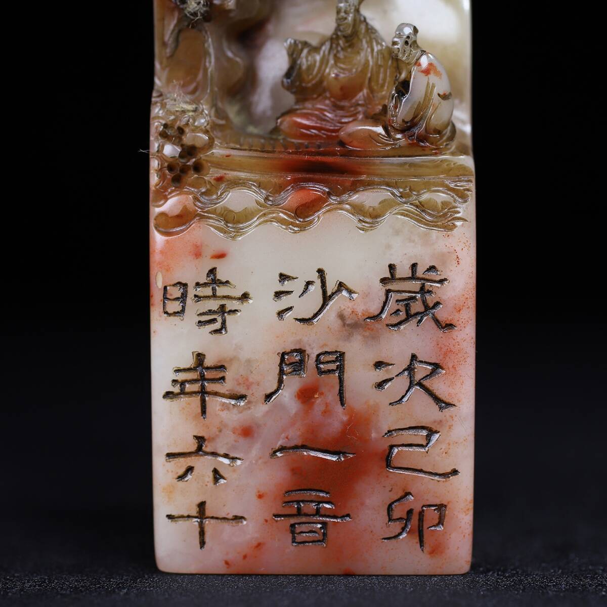 旧蔵 清 寿山石 深山の会友 人物紋 印鑑 天然石 篆刻 古印材 極細工 中国古玩 骨董品 古美味 206-21