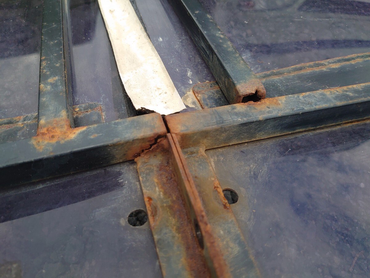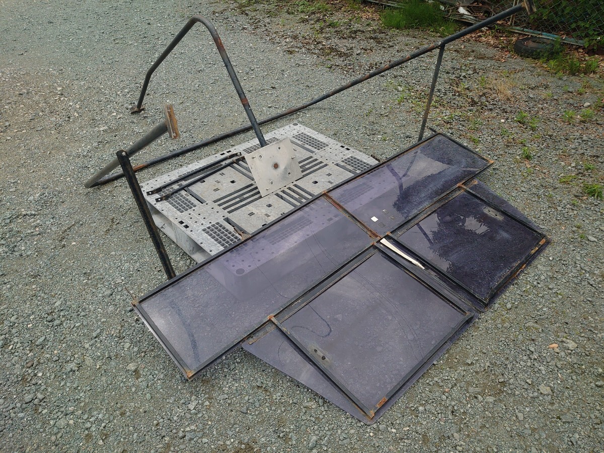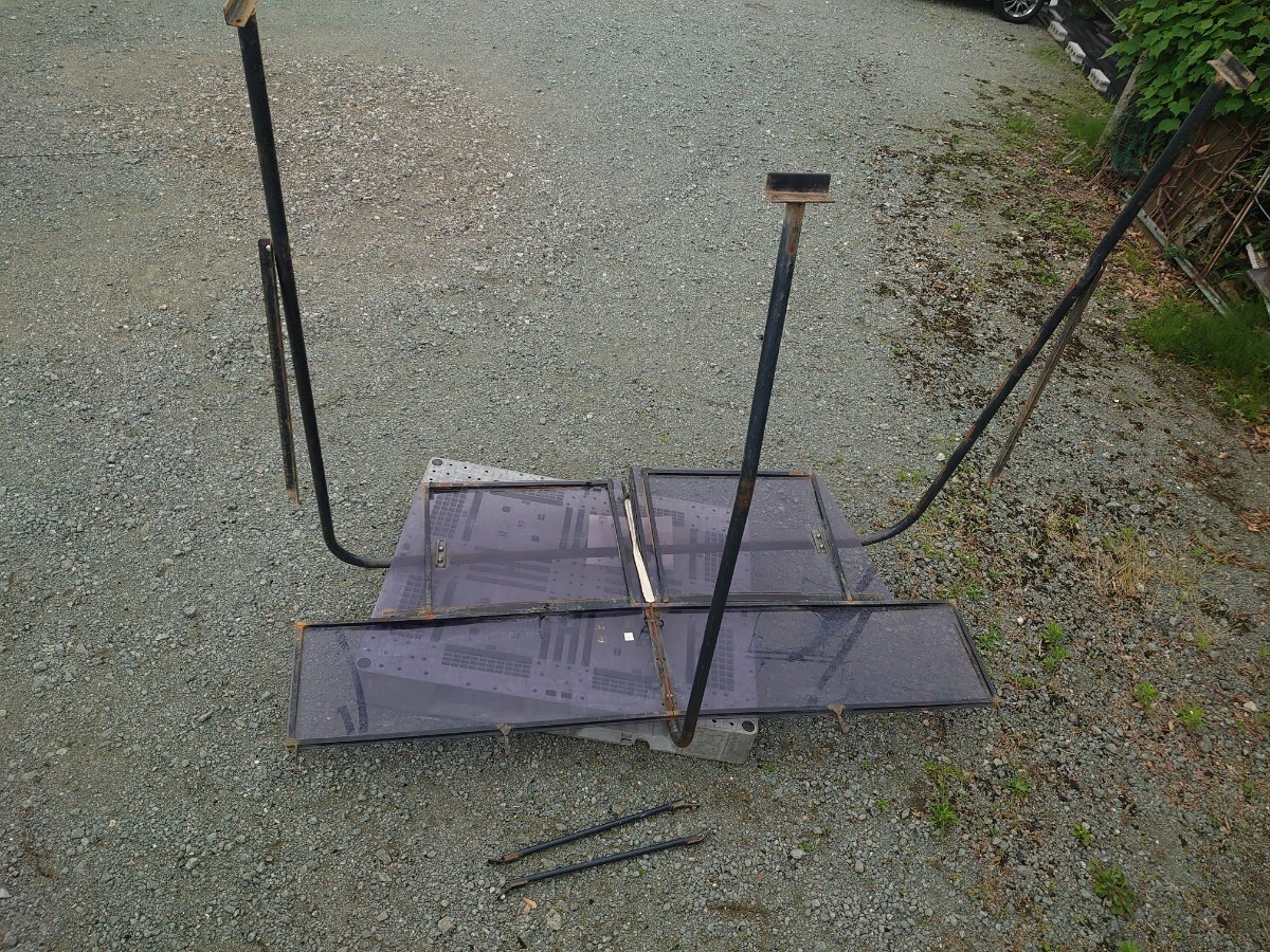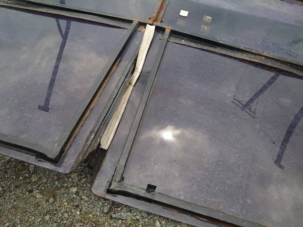 写真6、7枚目のように継ぎ目や屋根部分のパッキンが剥がれていたり、部分的に溶接が外れていたりするのでレストアベース、補修メンテナンスしてのご使用を前提としてお考え下さい