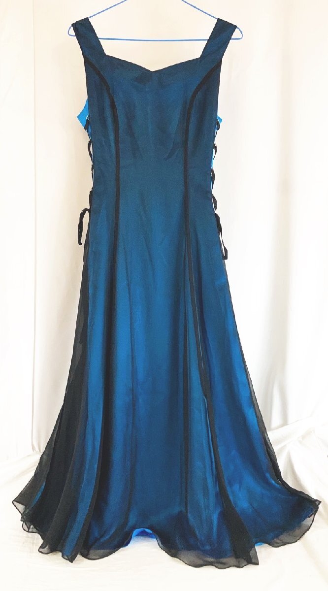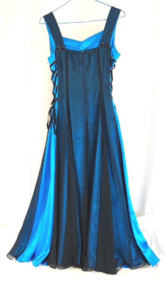 Fantasy ファンタジー ネイビー×ブルー系 ステージ衣裳 社交ダンス ドレス ノースリーブ 肩紐 ワンピース 11号 UD-10
