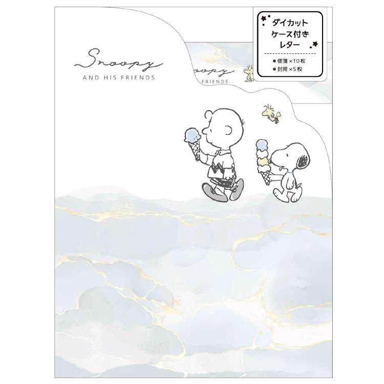【即決】▽スヌーピー ダイカットケース付きレター▽ カミオジャパン レターセット 便箋 封筒 手紙 ピーナッツ グレー メッセージ / 126783