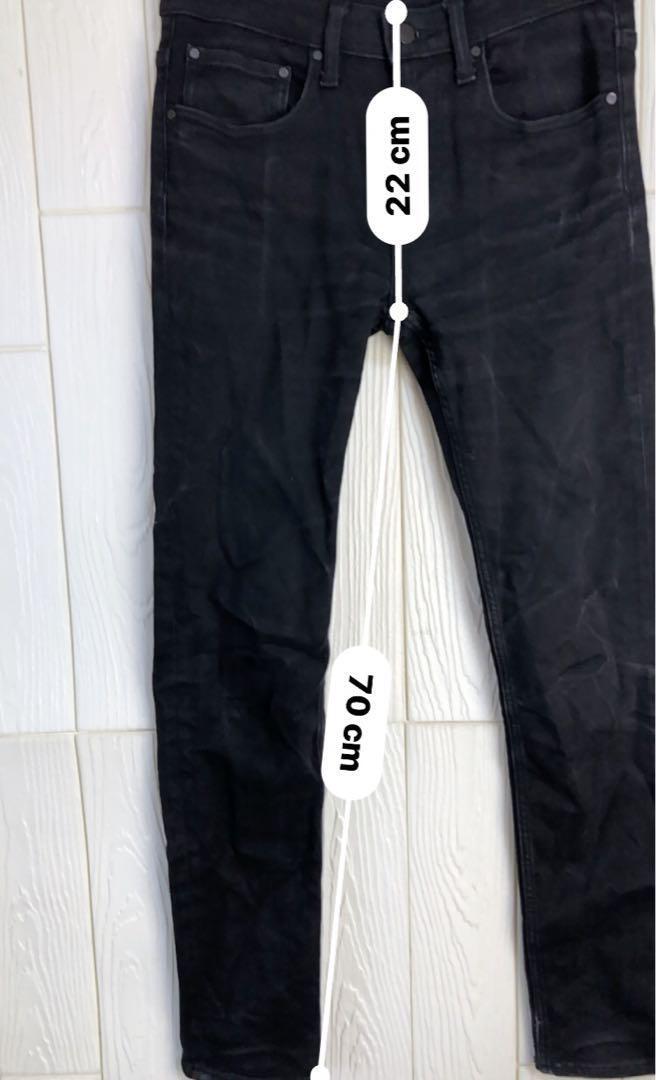 シンプルなブラックデニム、スリムフィットデザインでスタイリッシュ。