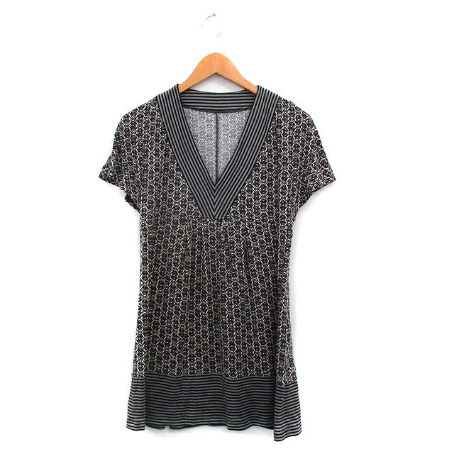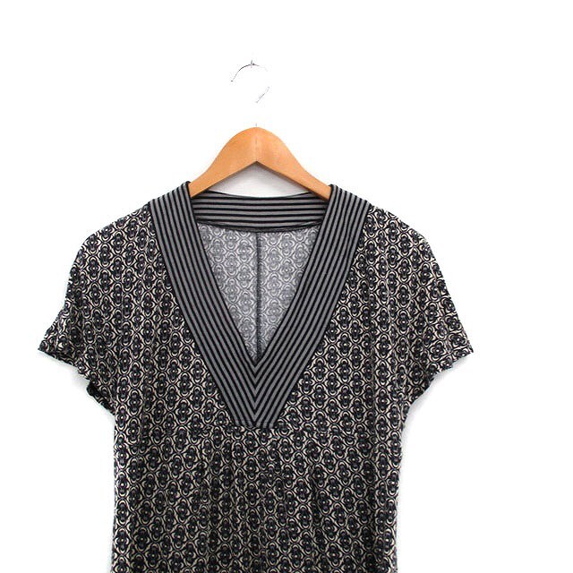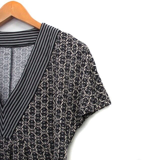 スチェッソ SUTSESO ワンピース 半袖 ミニ Vネック 総柄 40 グレー 灰 /KT16 レディース