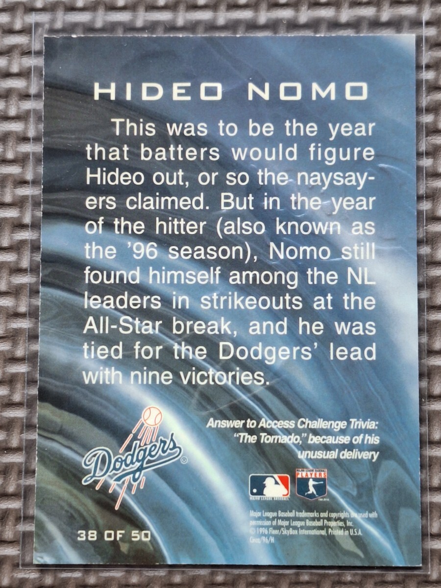 1996 Fleer Skybox #38 Of 50 HIDEO NOMO Boss 96 Los Angeles Dodgers Kintetsu Buffaloes