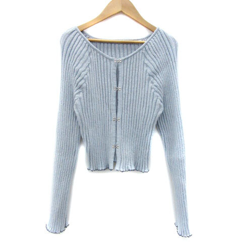 ミスティック mystic カーディガン ショート丈 リブ F ライトブルー 水色 /YM21 レディース