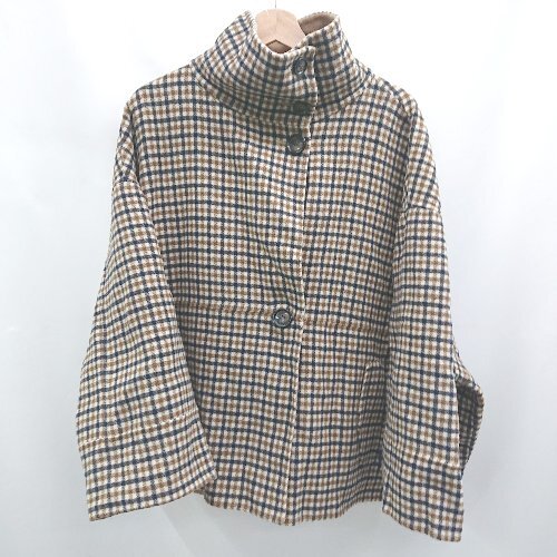 ◇ ⊇ SHIPS any シップス チェック 長袖 コート サイズF ベージュ レディース E