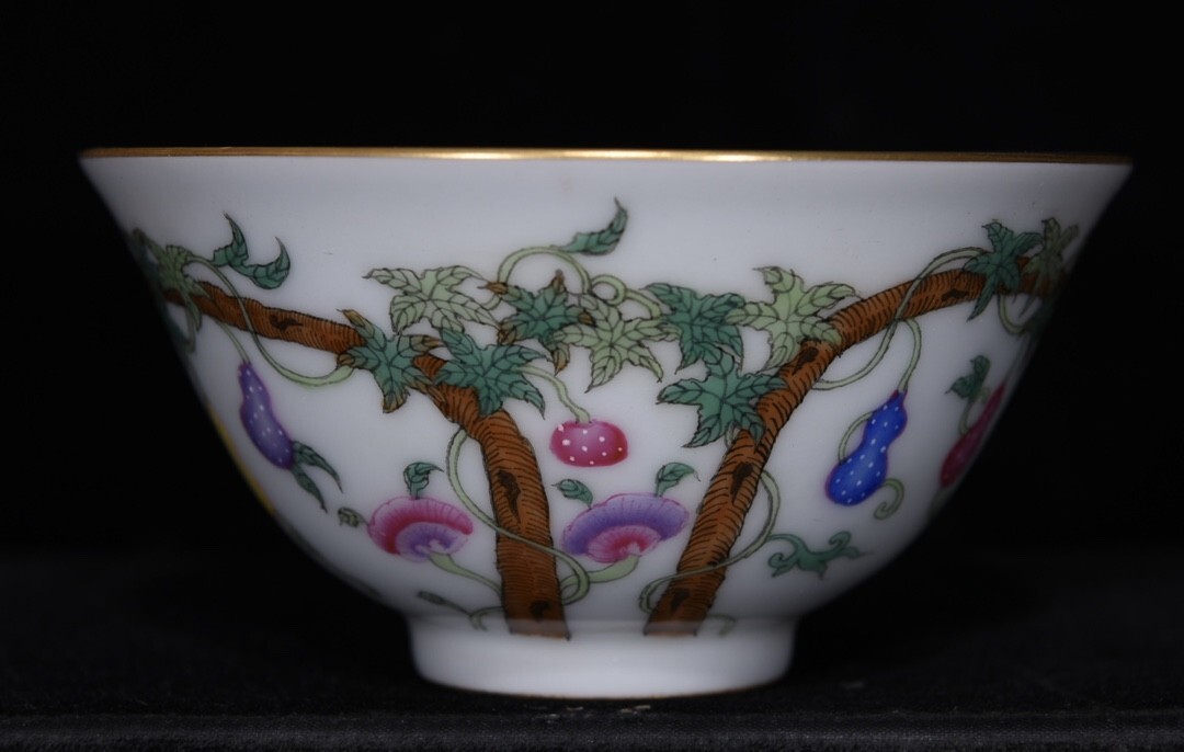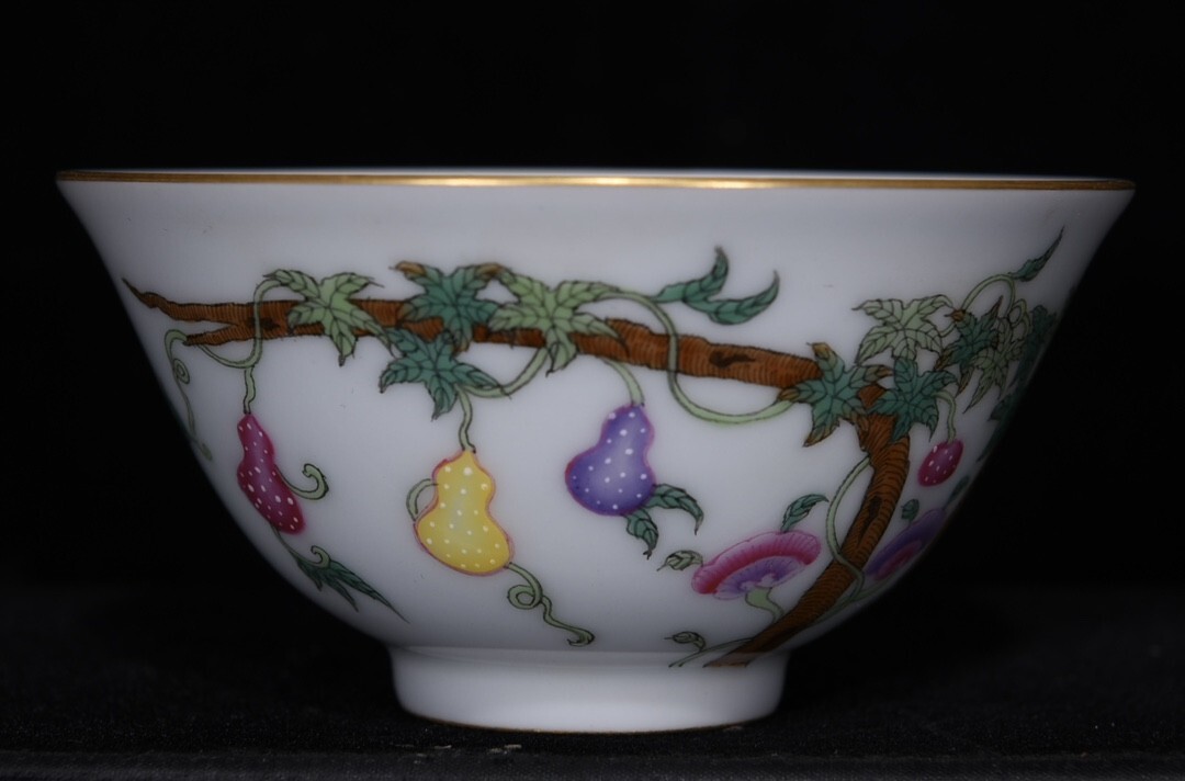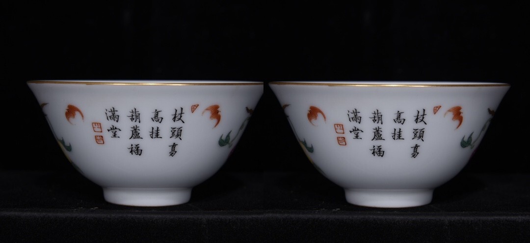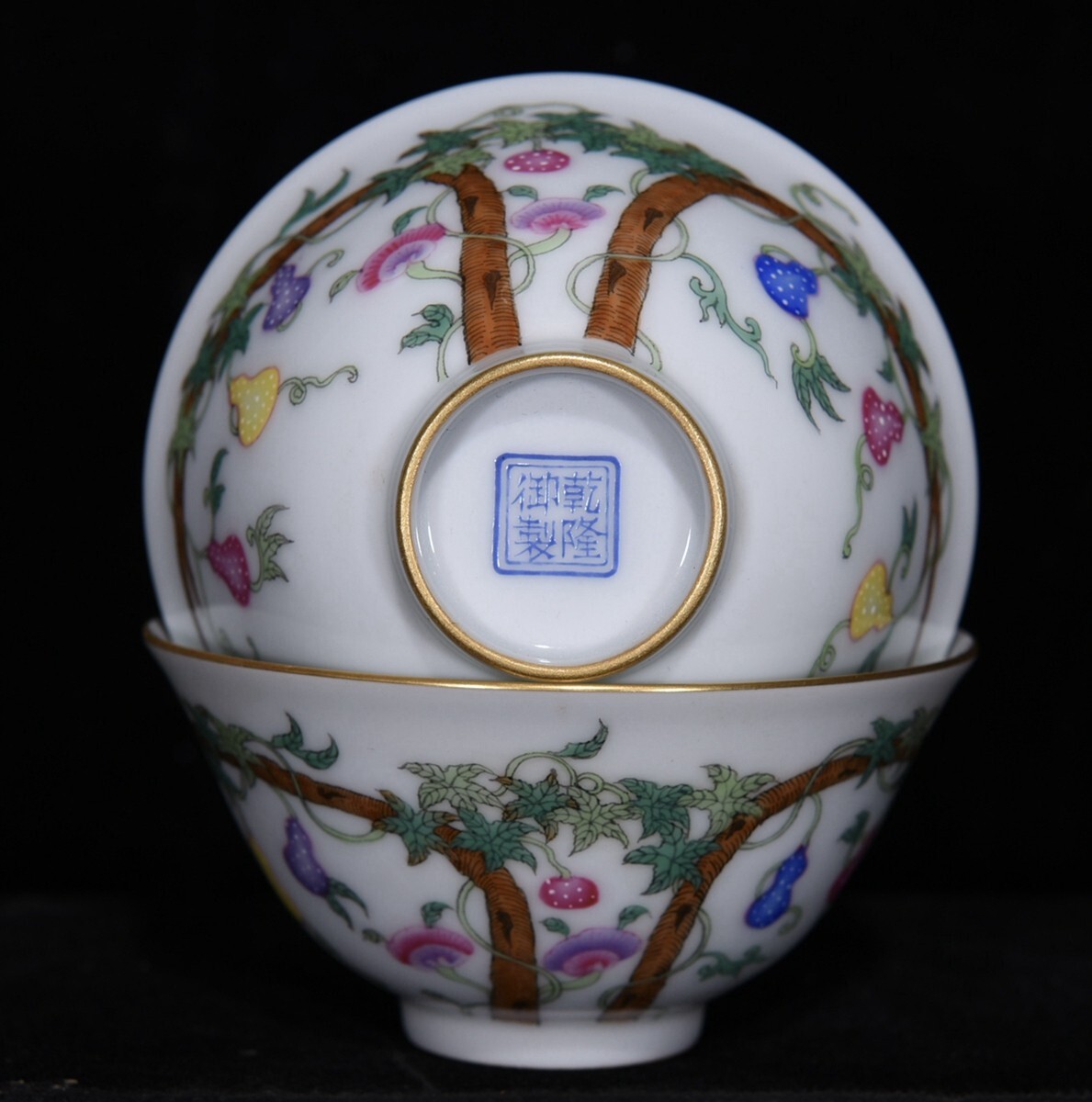 「清 乾隆御製 陶磁器 琺瑯彩多子多孫紋 碗一対」染付 置物 擺件 古賞物 中国古美術 旧蔵出