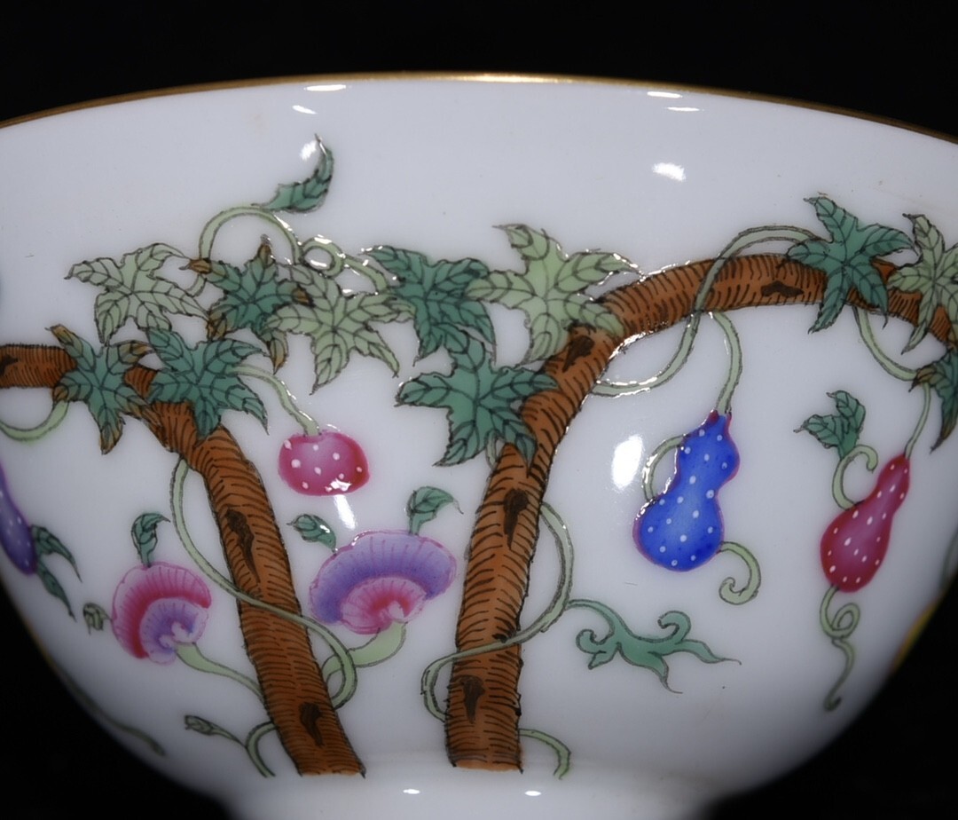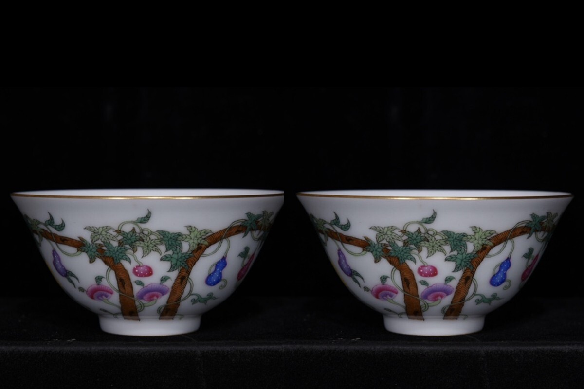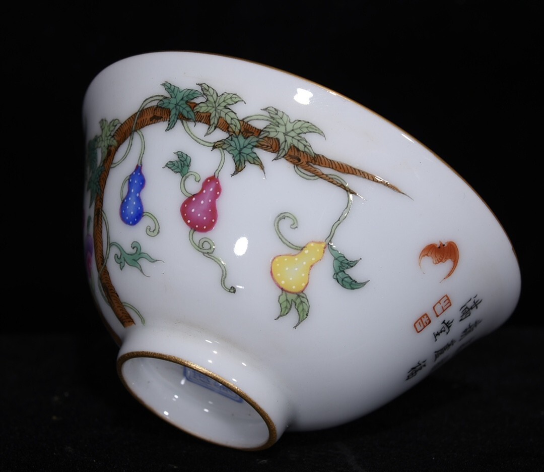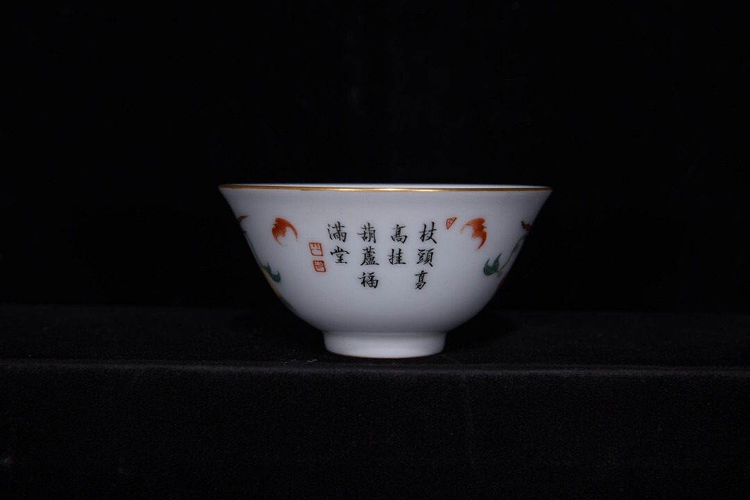 「清 乾隆御製 陶磁器 琺瑯彩多子多孫紋 碗一対」染付 置物 擺件 古賞物 中国古美術 旧蔵出