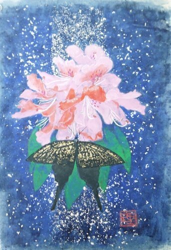中條理恵子 「風の力学(Ⅲ)シャクナゲ」 日本画 19×14CM |