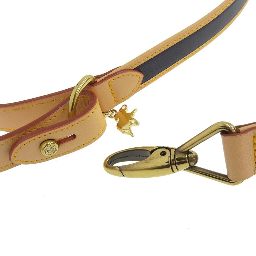 | 美品 ハンティングワールド バチュー × レザー 首輪 リード ハーネス セット ネイビー |