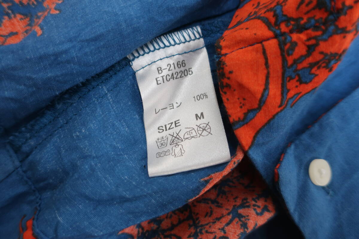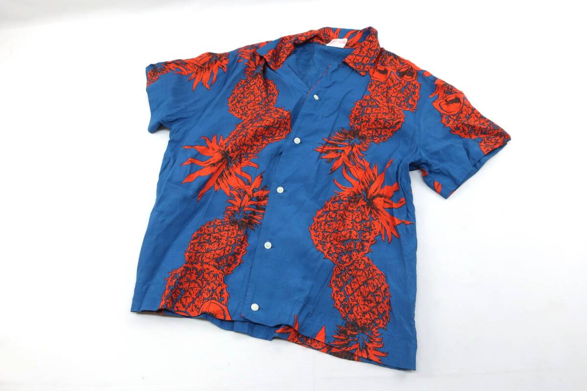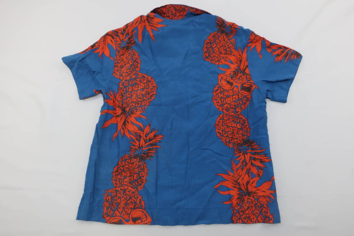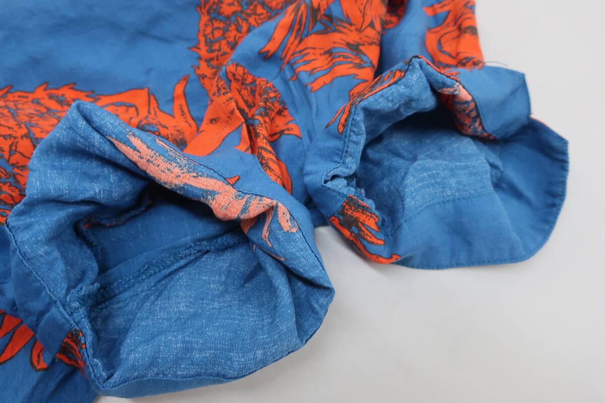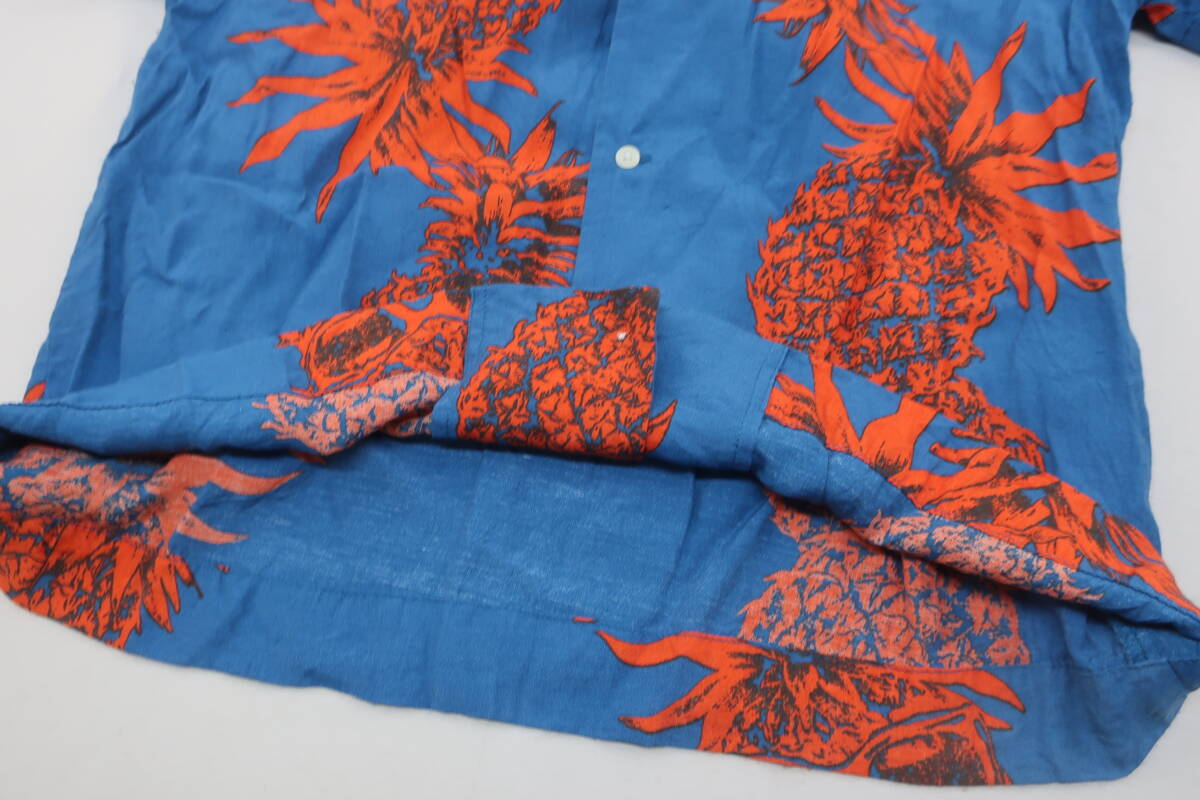 【送900円】9104 最終 RNA アールエヌエー パイナップル柄半袖開襟シャツ ブルー×オレンジ レーヨン100% 前開き 羽織 M